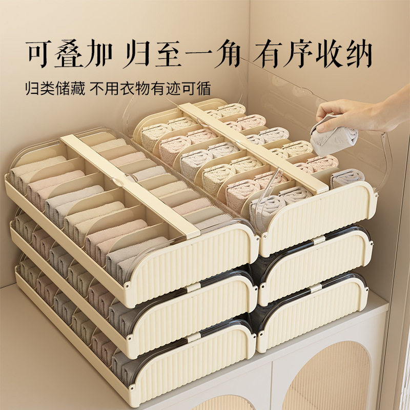 透明衣柜收纳盒整理衣服裤子分层收纳神器衣物内衣内裤袜子储物箱
