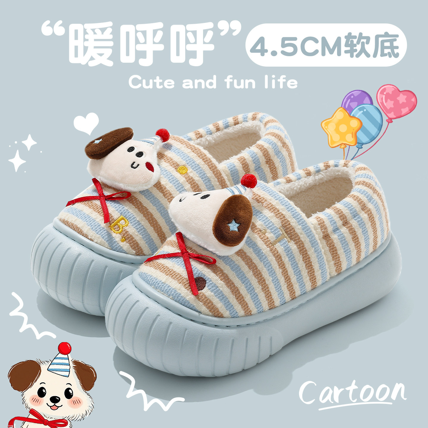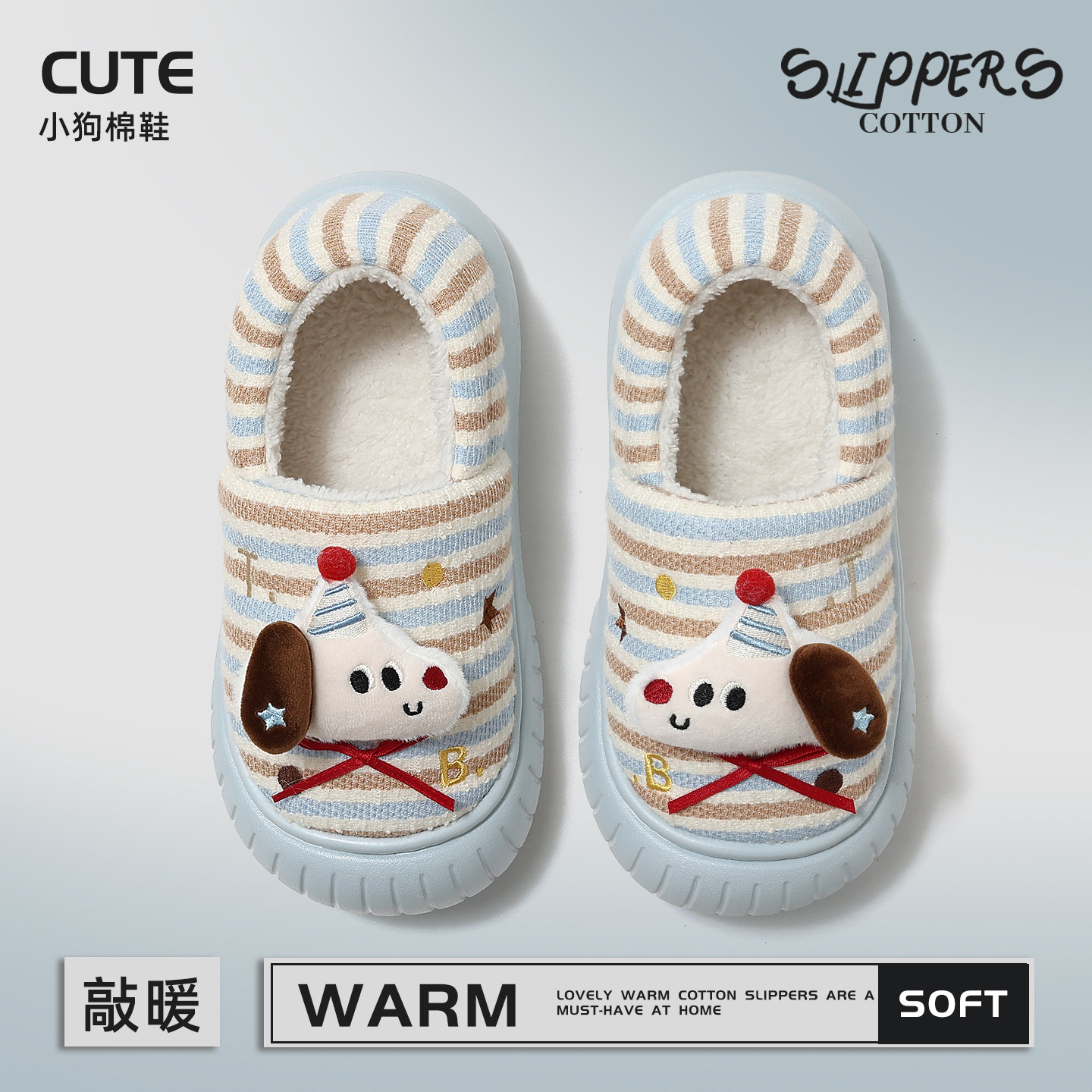 儿童棉拖鞋女童冬季2025新款包跟室内家居亲子可爱小狗保暖棉鞋男