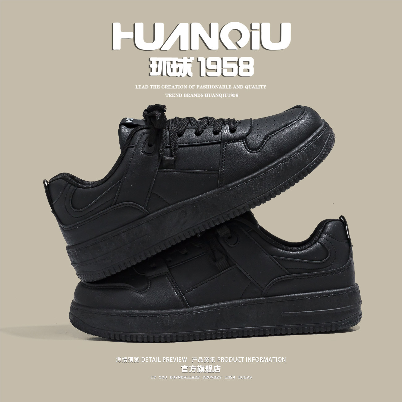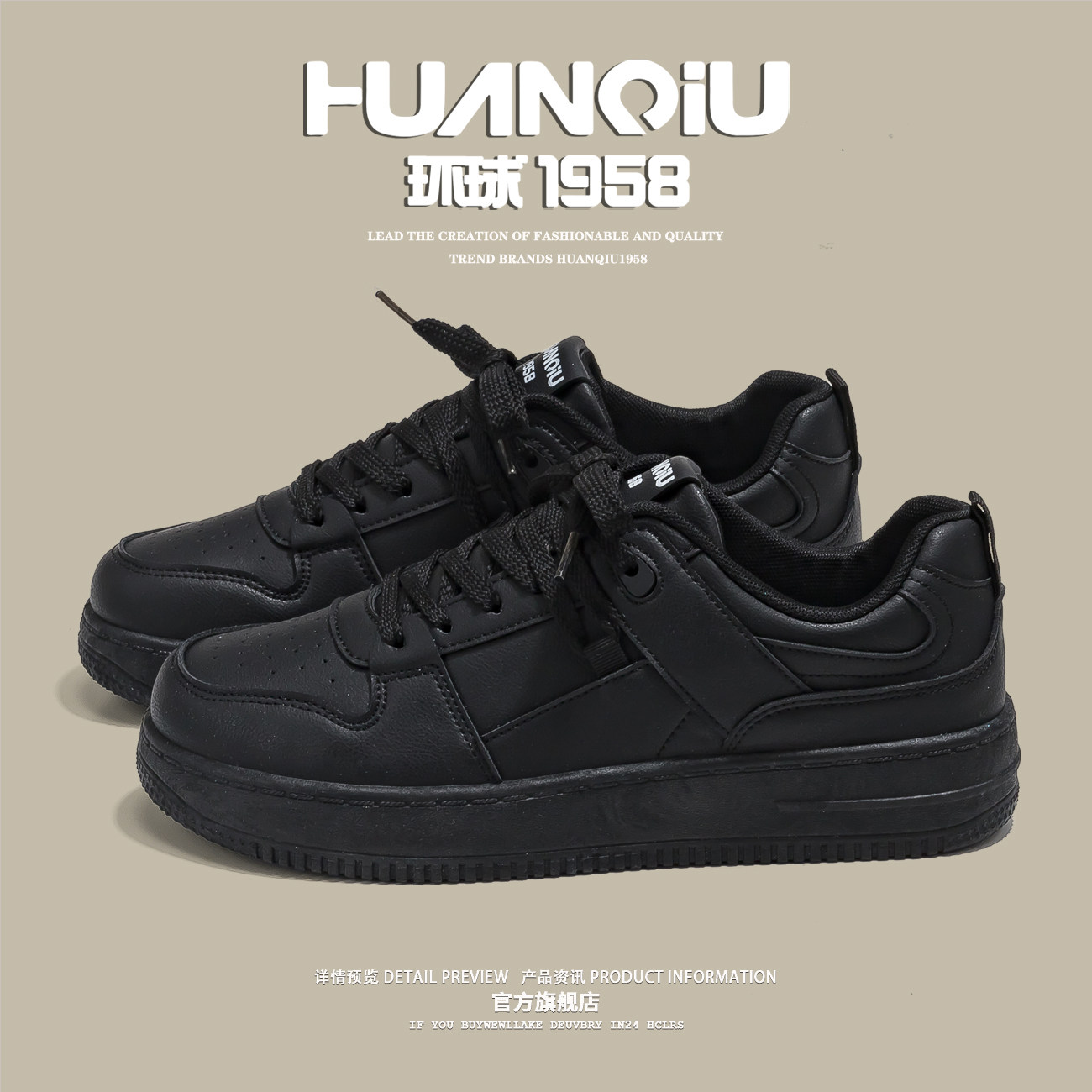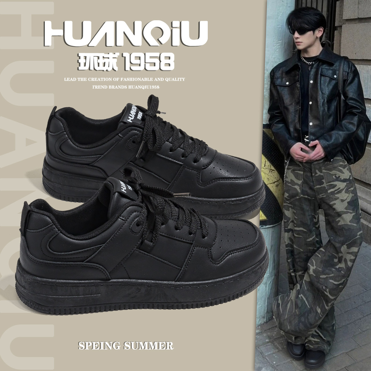 环球黑色板鞋男2026春季新款休闲风百搭机车风潮鞋低帮舒适耐磨鞋