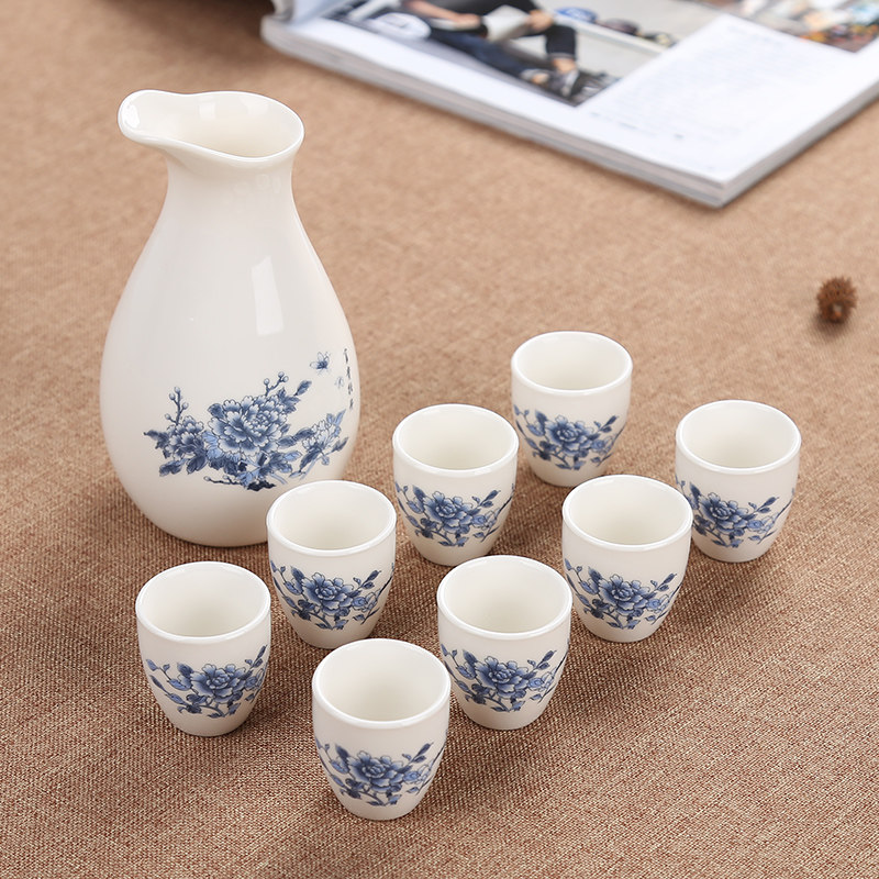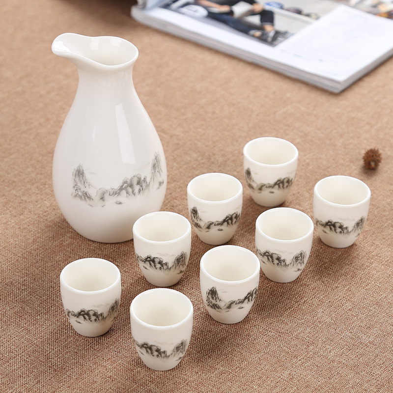陶瓷酒具套装半斤小酒壶9件套分酒器白酒杯黄酒烈酒酒盅日式清酒