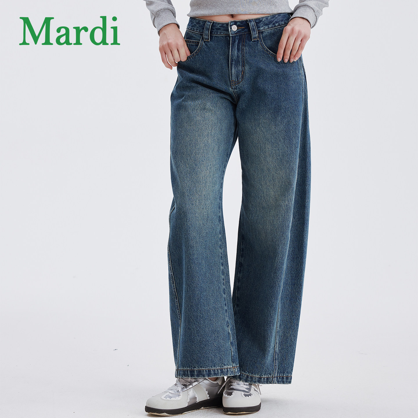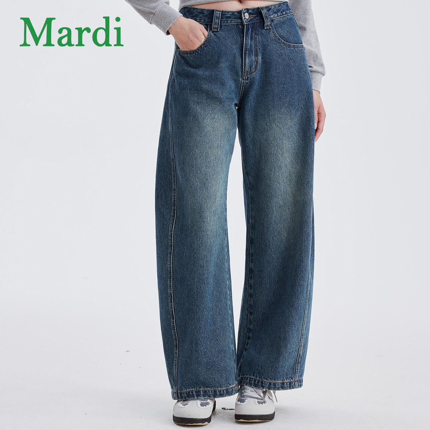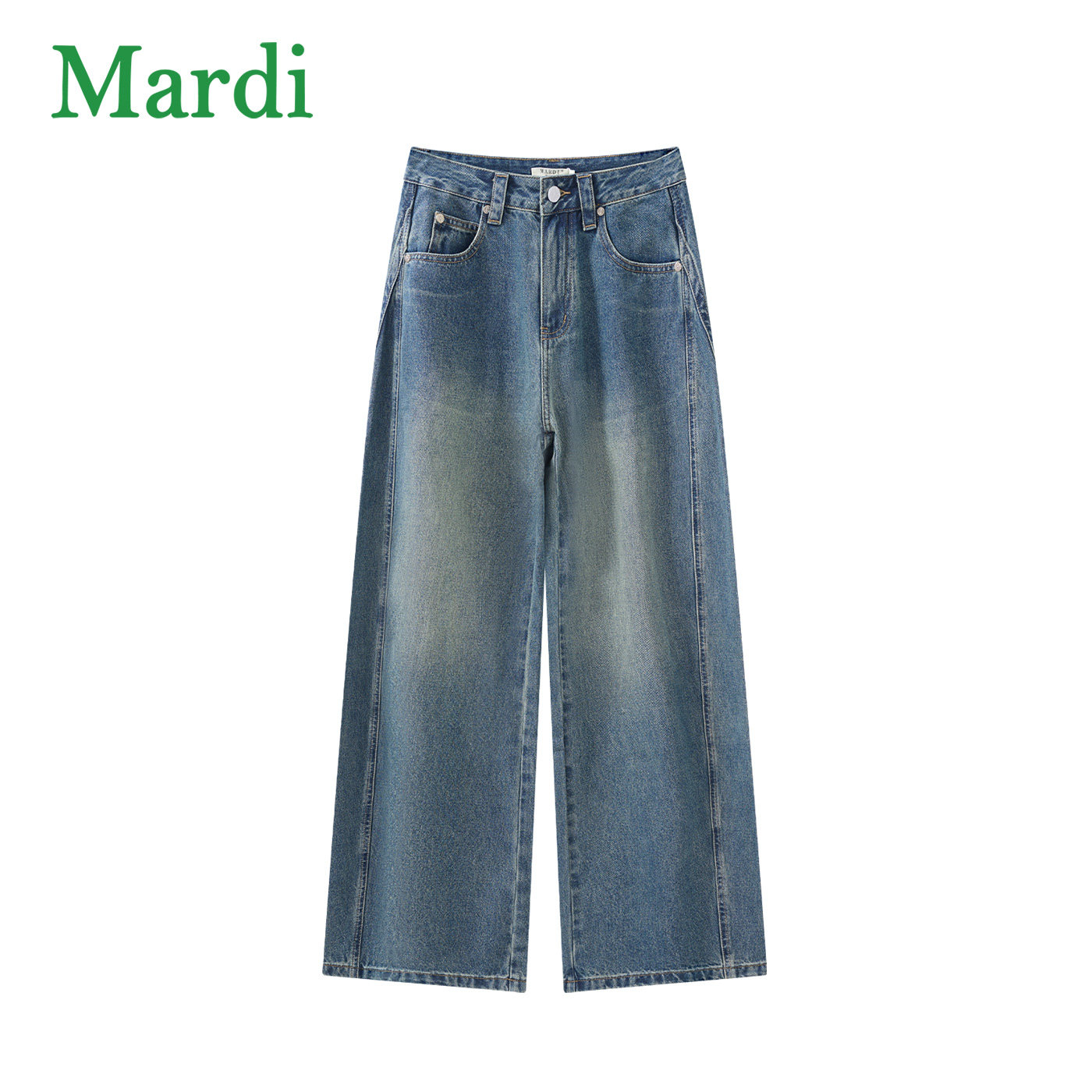 MARDI小雏菊牛仔裤宽松百搭时尚潮流新款显瘦女直筒裤牛仔蓝少女
