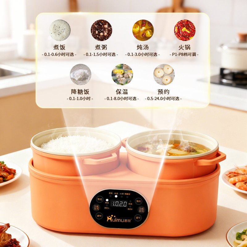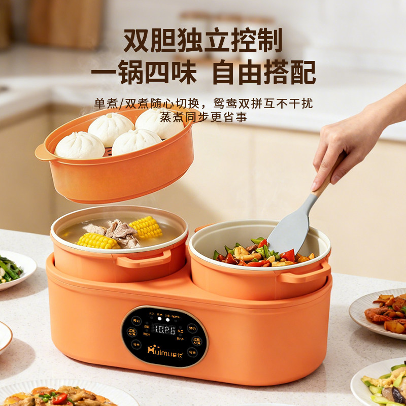 双胆电煮饭煲多功能智能家用煮蒸炒煎可分体双控电鸳鸯锅米汤低糖