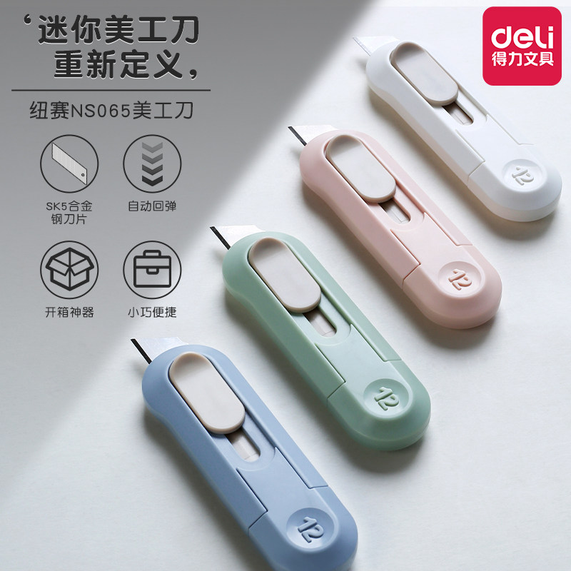 得力便携美工刀拆快递开箱神器拆纸刀迷你随身手工刀自动回弹小号裁纸刀工具刀具壁纸小刀子壁纸刀切割刀