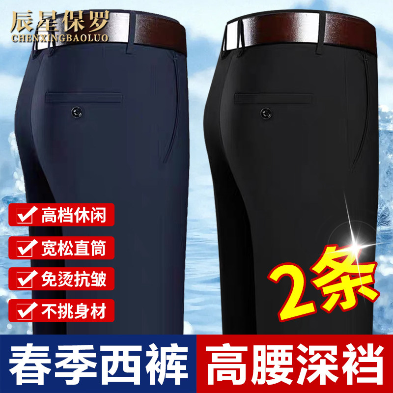 下单立减60【买一送一】春季厚款裤子男抗皱免烫弹力直筒西裤t1