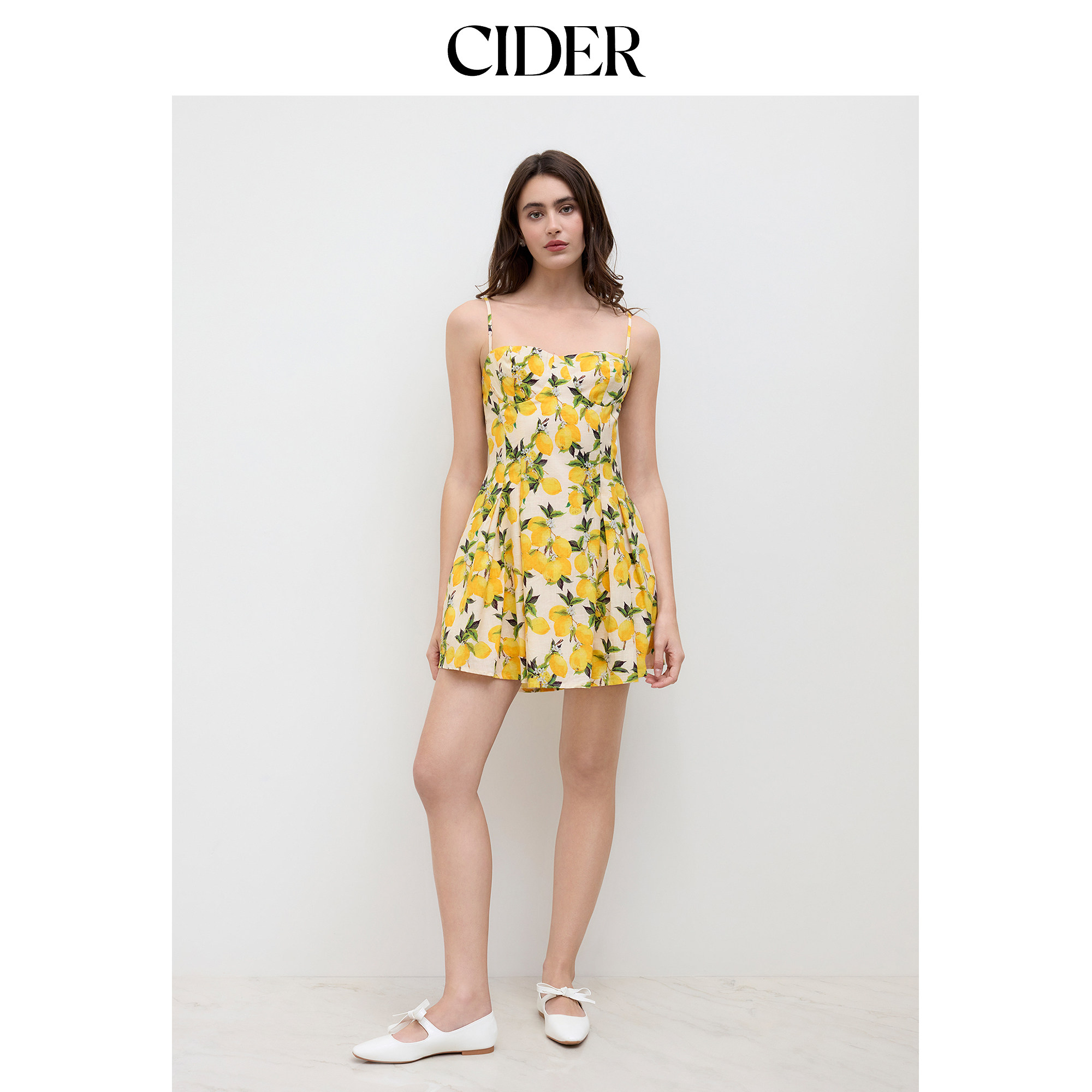 CIDER 清新柠檬系带甜心领棉质海边度假连衣裙114468777