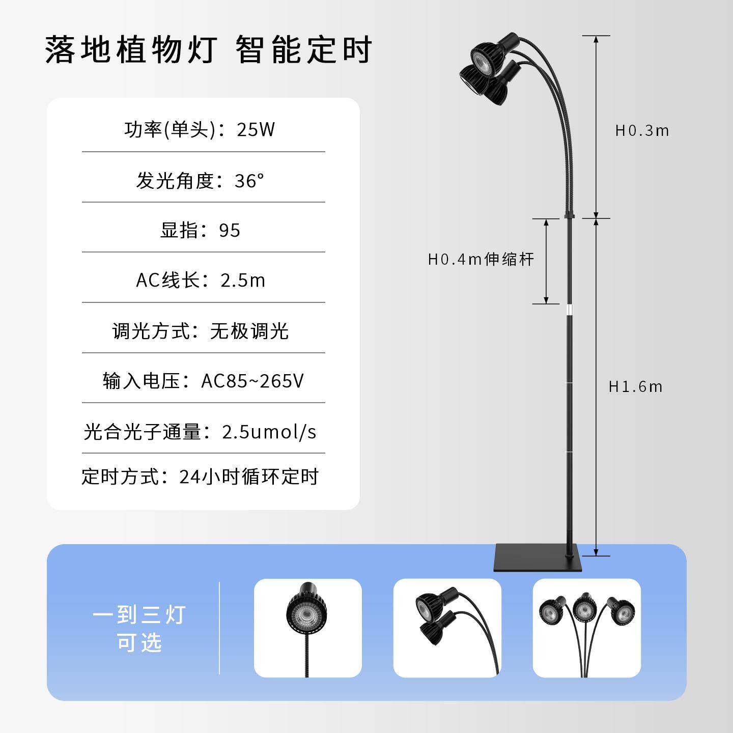 罗汉松多肉灯具植物补光灯落地式定时PAR30LED鱼缸灯龙舌兰可调光