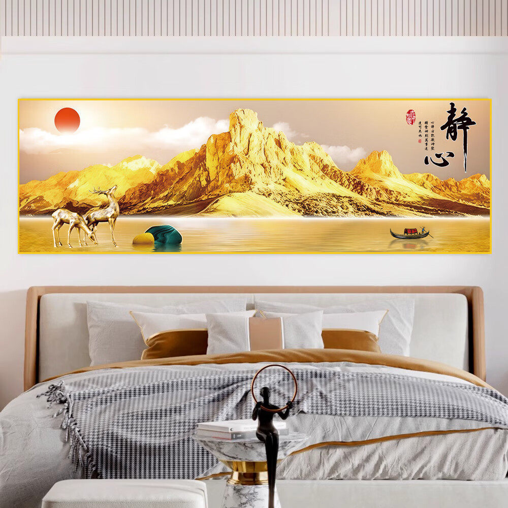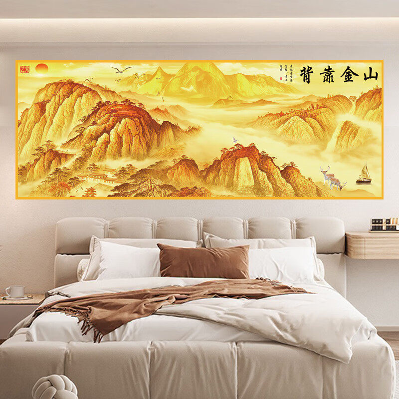 卧室床头背靠金山装饰画客厅挂画自粘中式沙发背景墙贴画壁画贴纸