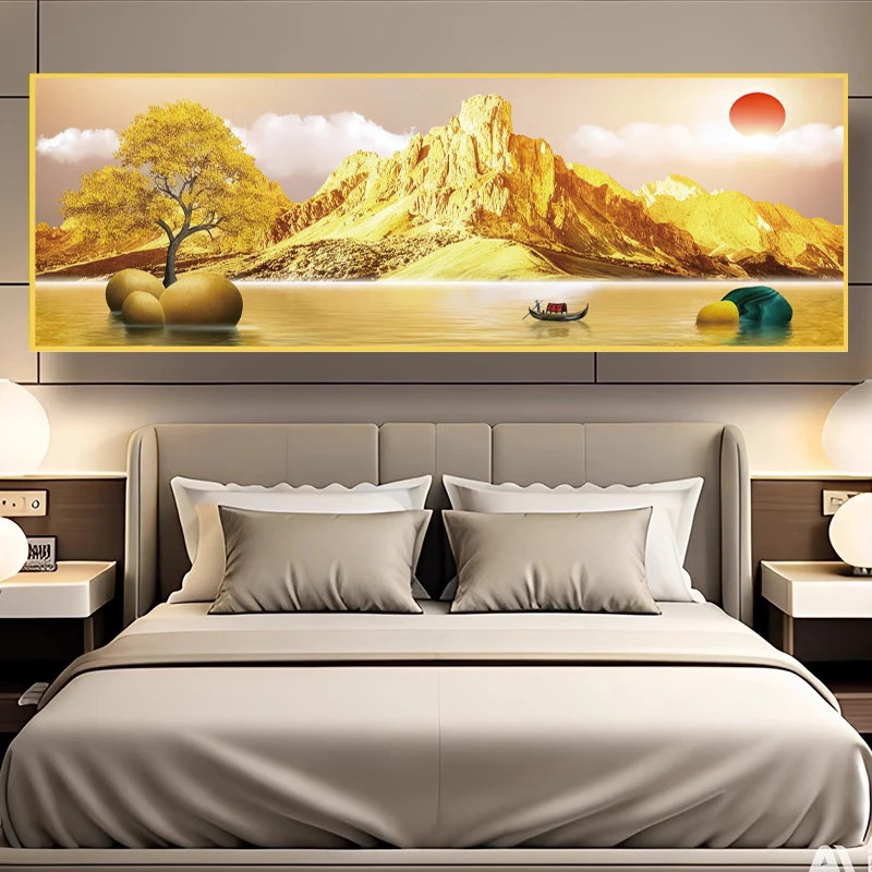 床头贴画装饰画客厅沙发背景自粘卧室墙贴3D现代风景轻奢山水墙纸