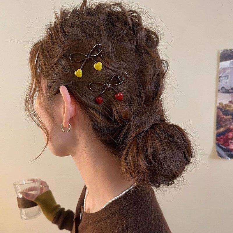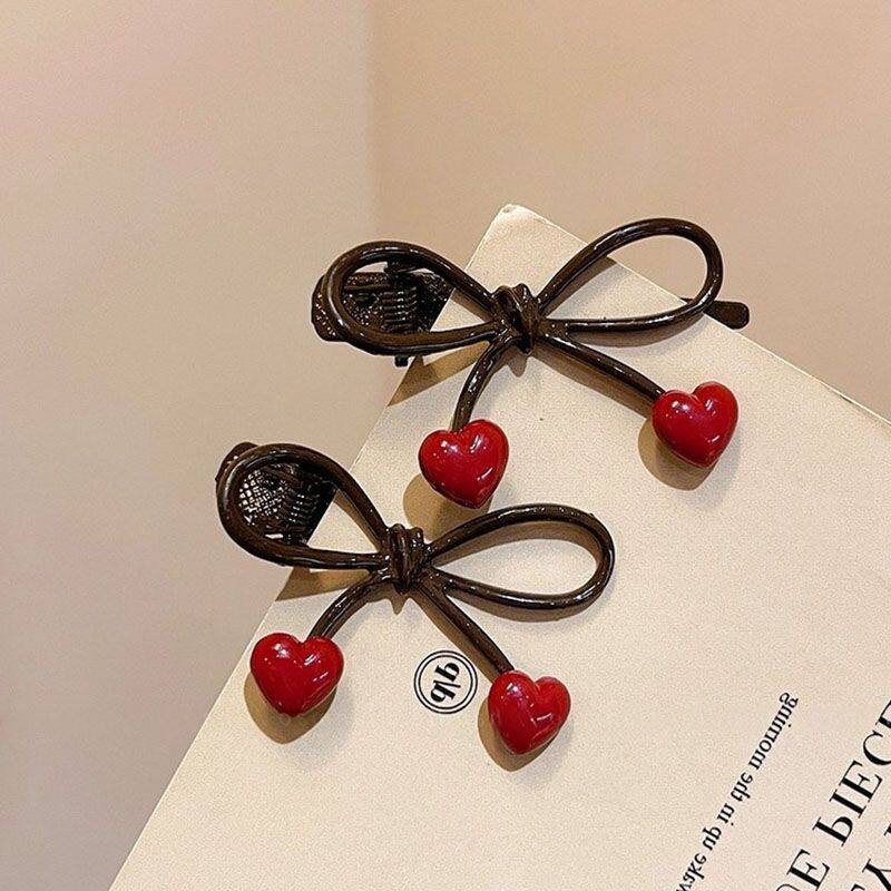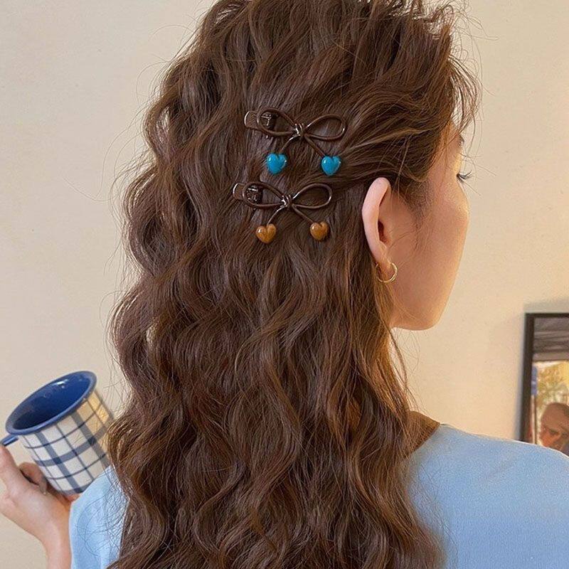 蝴蝶结发夹女咖色爱心边夹侧边前额发卡2025新款刘海夹子高端头饰