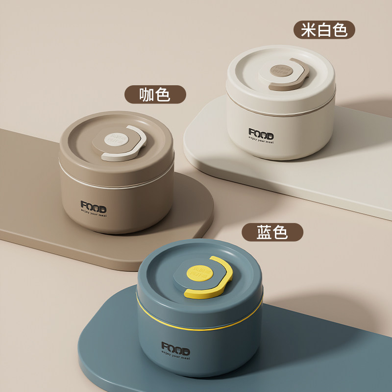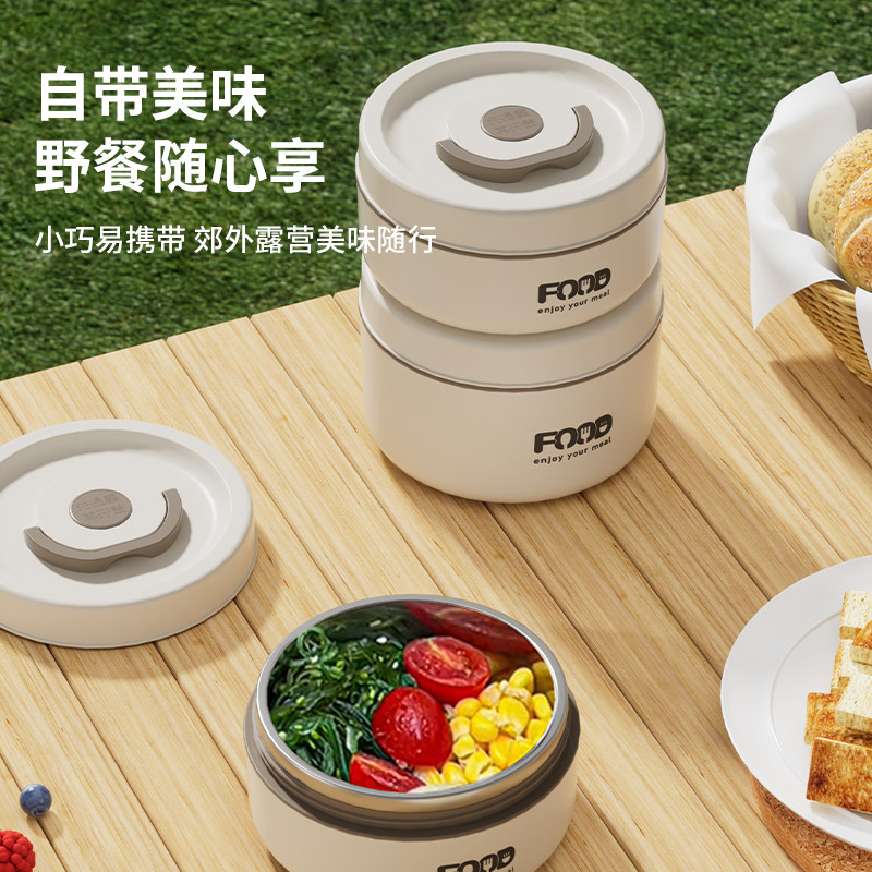 梵施家品保温饭盒大容量小双层上班族轻便携不锈钢圆形提手便当盒