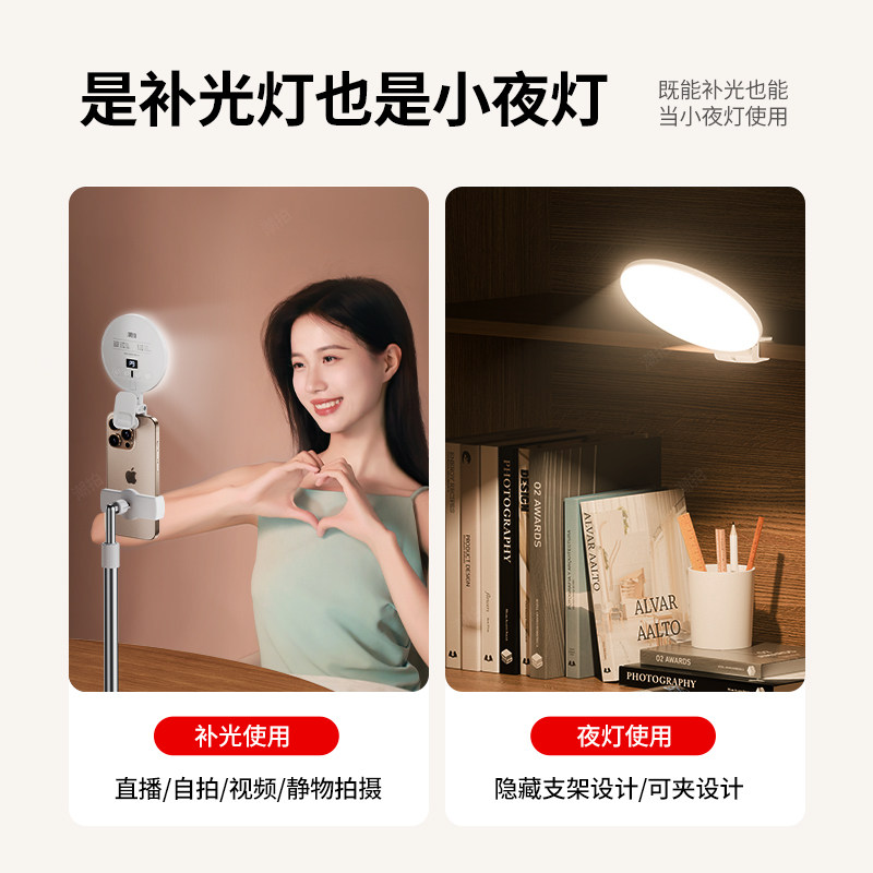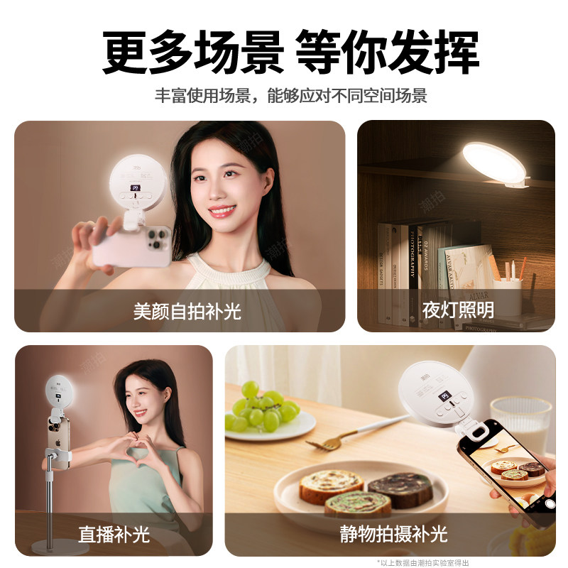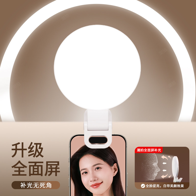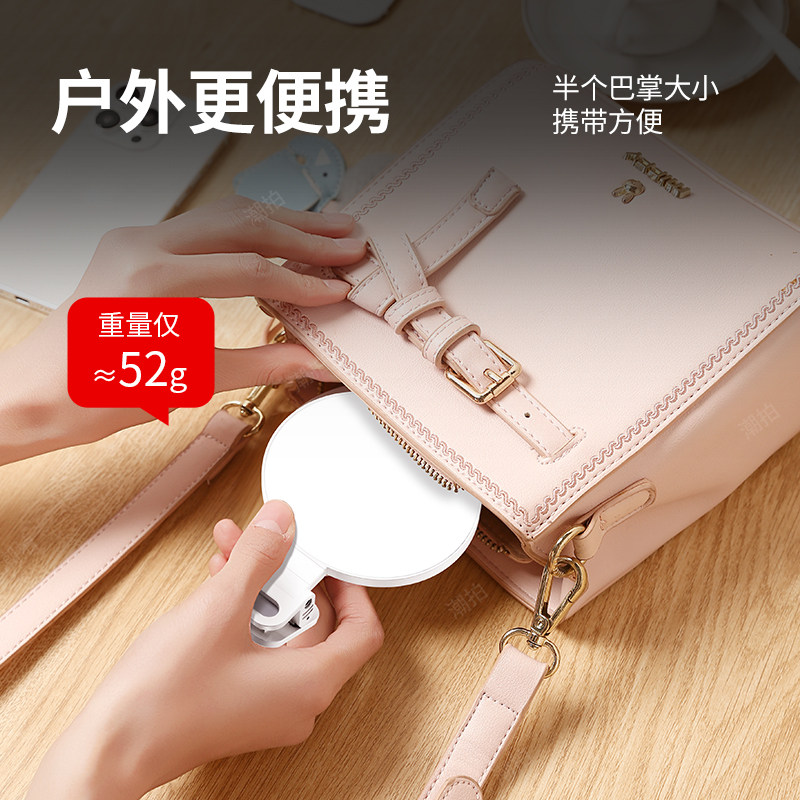 潮拍迷你便携式自拍手机补光灯摄影三色直播拍摄打光灯美食led氛围灯小巧户外手持专业柔光灯口袋美颜灯