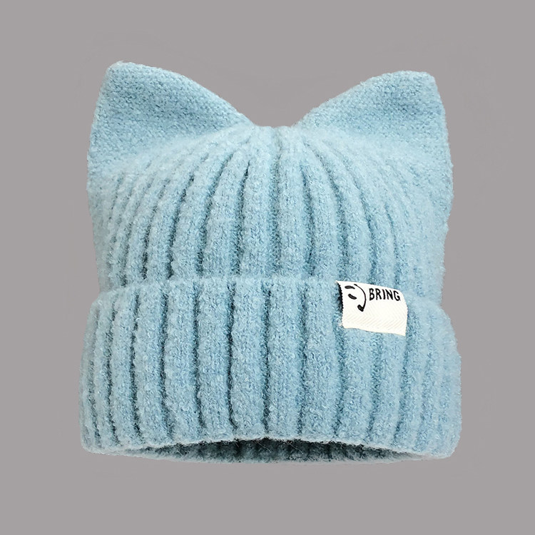 Classy key新加坡设计师联名款日系可爱猫耳朵毛线帽显脸小针织帽