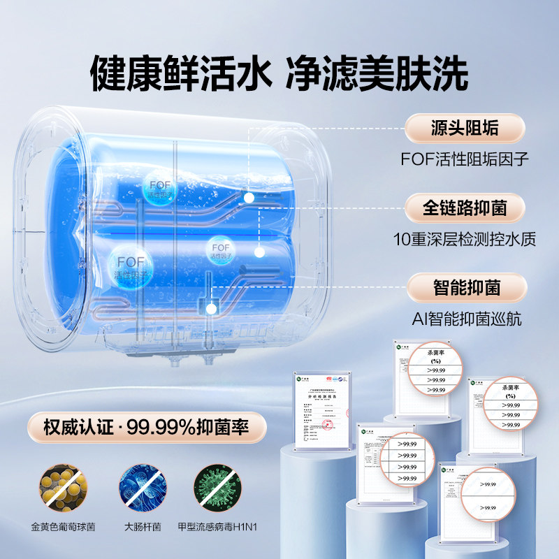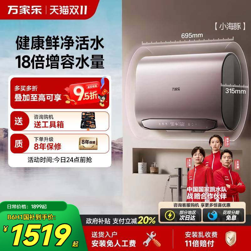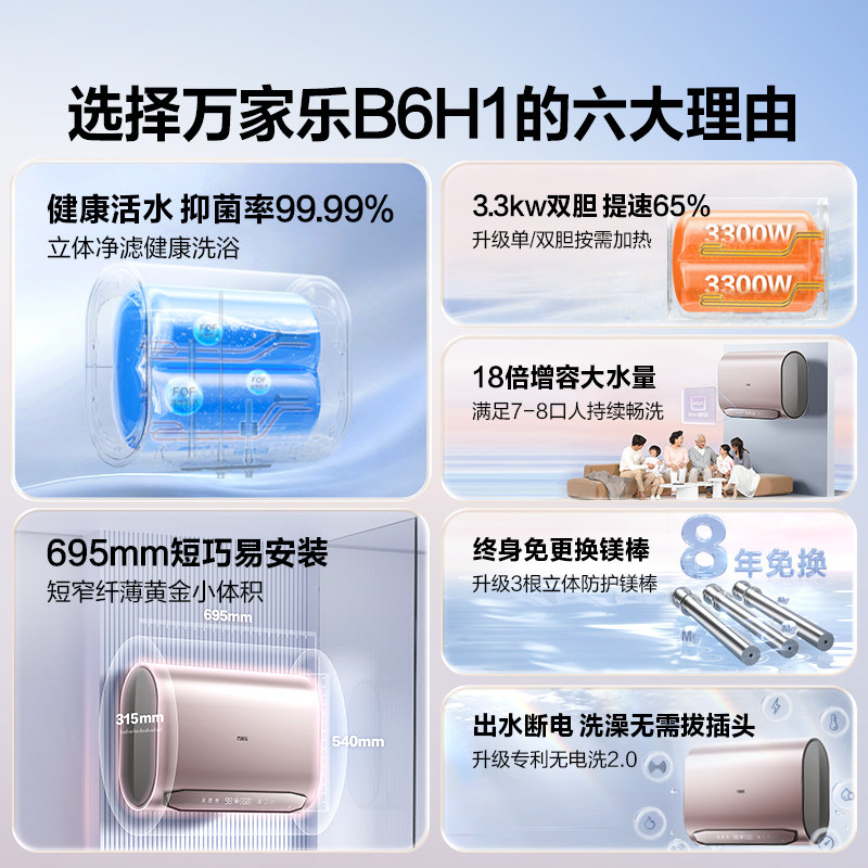 万家乐电热水器扁桶双胆家用卫生间洗澡储水速热60升B6H1节能省电