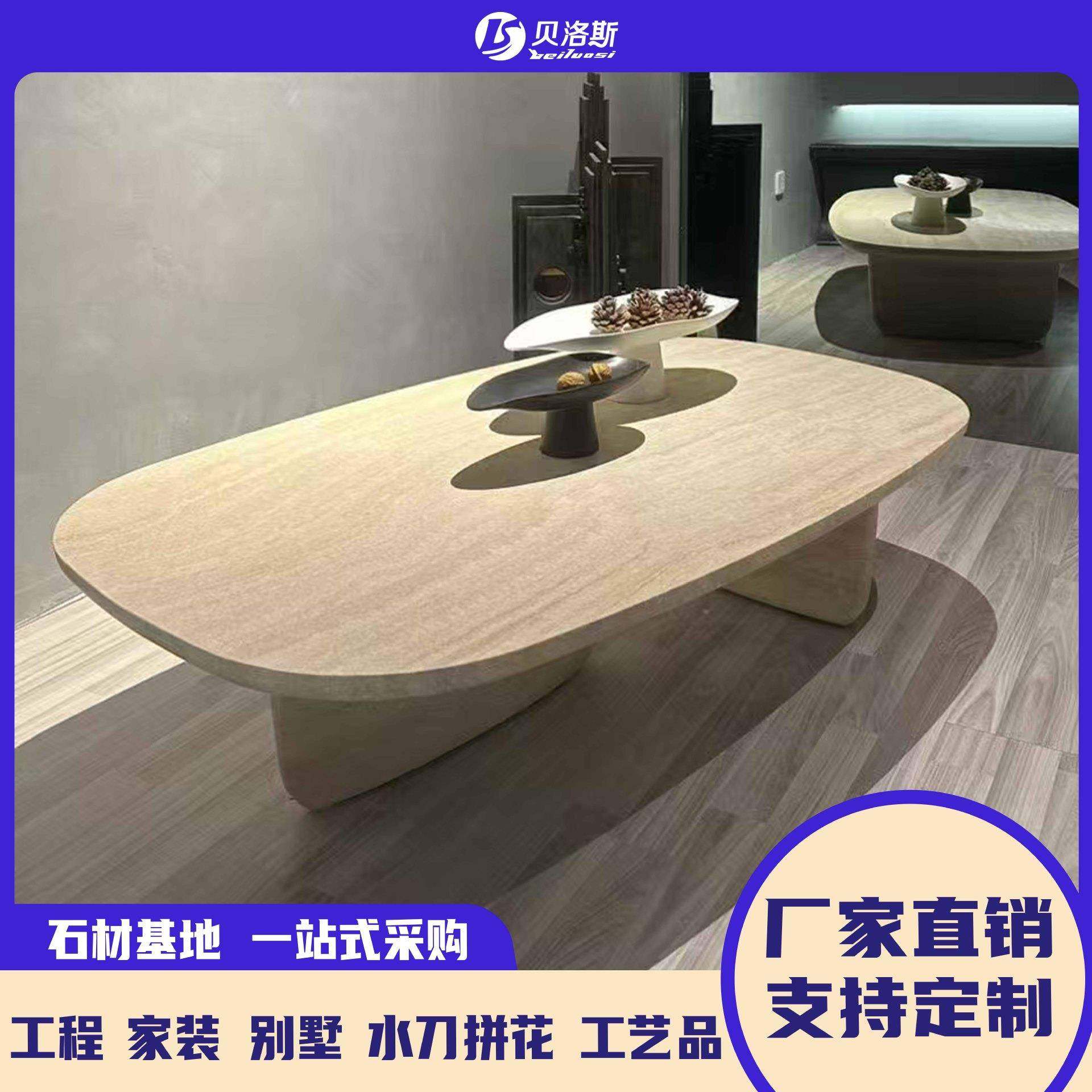 天然大理石奶油风茶几家用长方形桌子中古风小户型洞石窗台石餐桌