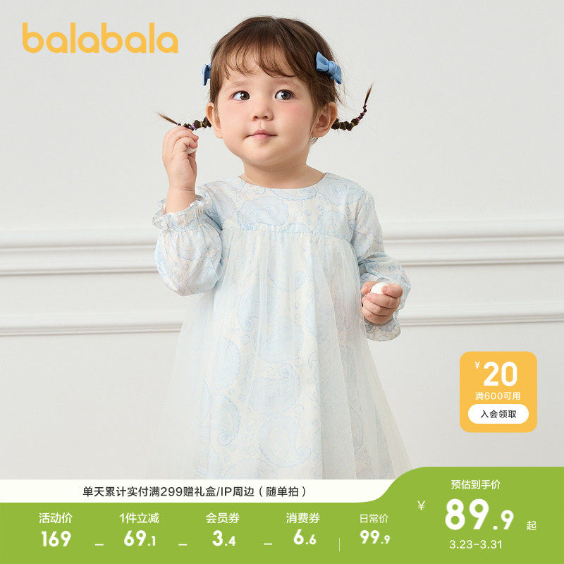 【balaOne】巴拉巴拉童装女童连衣裙2025新款春装网纱裙甜美洋气