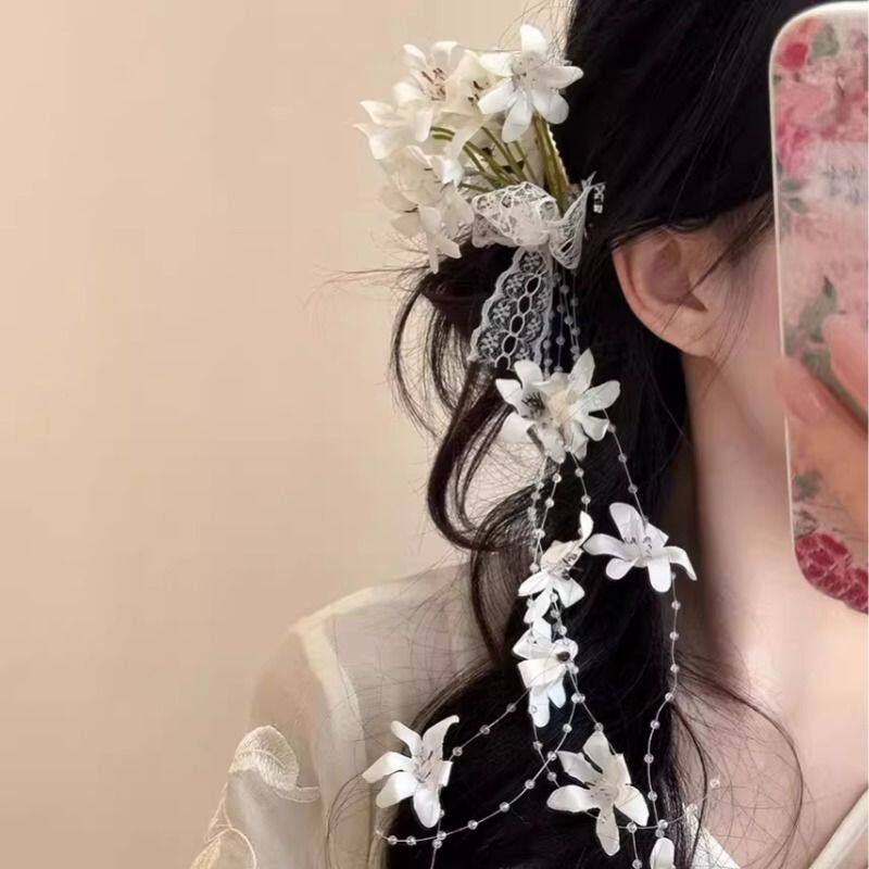 新中式古风仿真铃兰花朵发夹女森系氛围感超仙流苏侧边夹盘发头饰