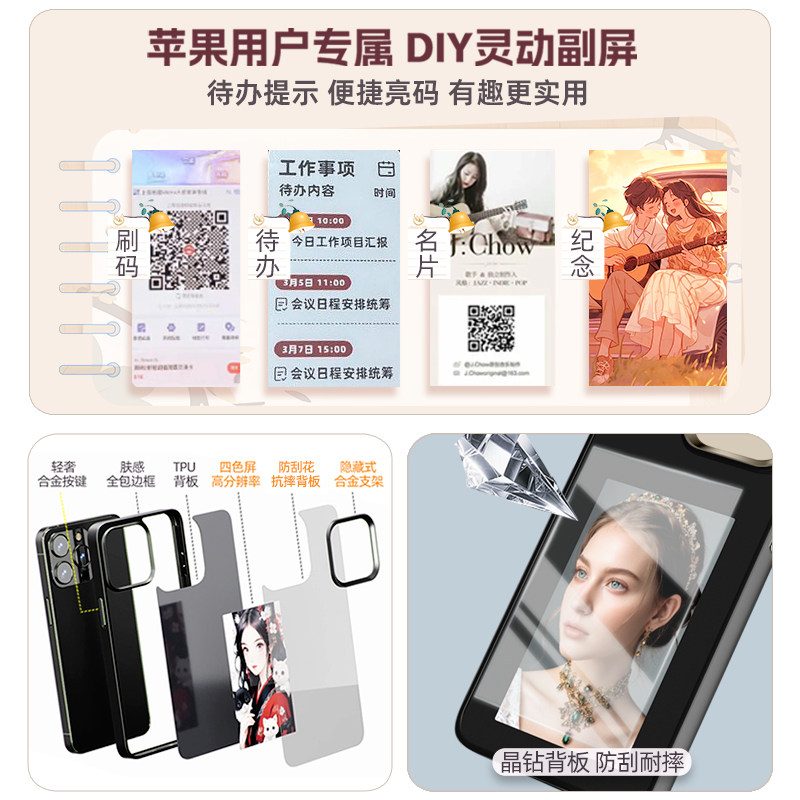 【1年换新】高清电子墨水屏NFC投屏AI手机壳4寸屏iPhone16Pro Max 15/14/13磨砂高级感DIY苹果磁吸支架壳套