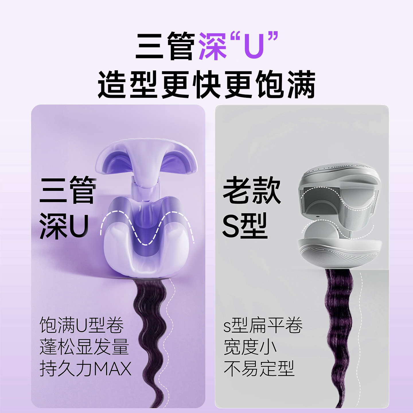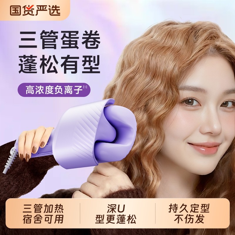 lena蛋卷头卷发棒32mm三管蛋蛋卷棒深v大卷负离子夹板卷发水波纹