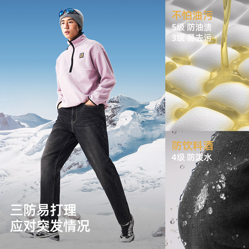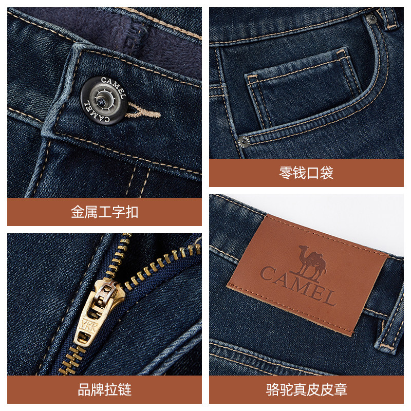 骆驼男装百搭三防牛仔裤弹力直筒黑色加绒深色新款户外登山运动冬