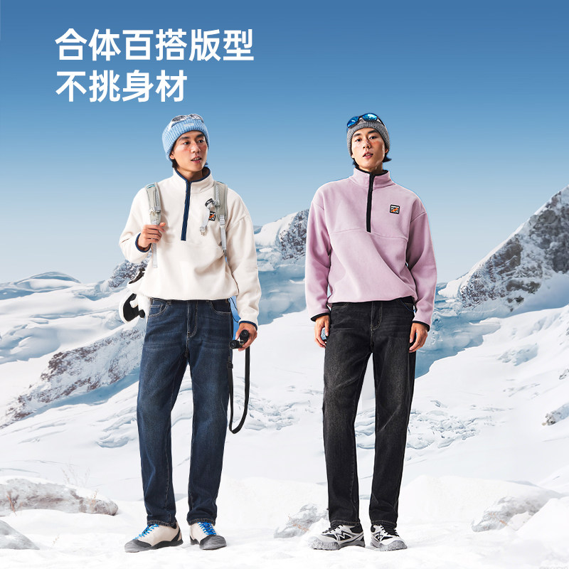 啄木鸟男士加绒加厚牛仔裤冬季超厚保暖宽松直筒长裤抗寒休闲裤子