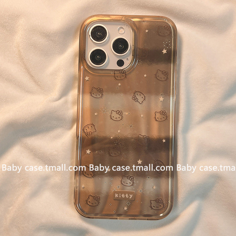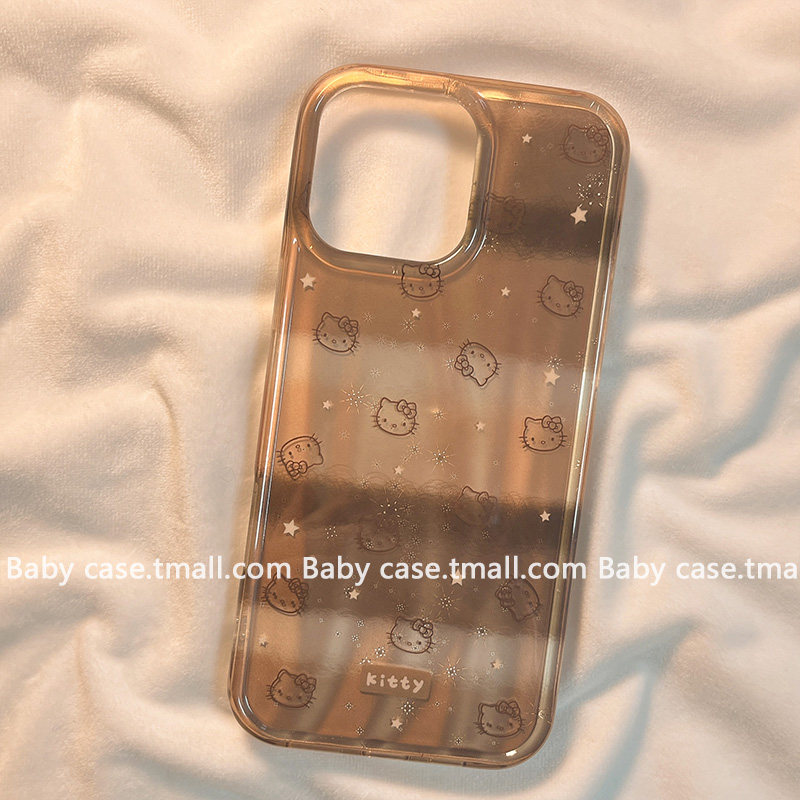 高级感棕色晕染条纹星星KT猫适用苹果手机壳