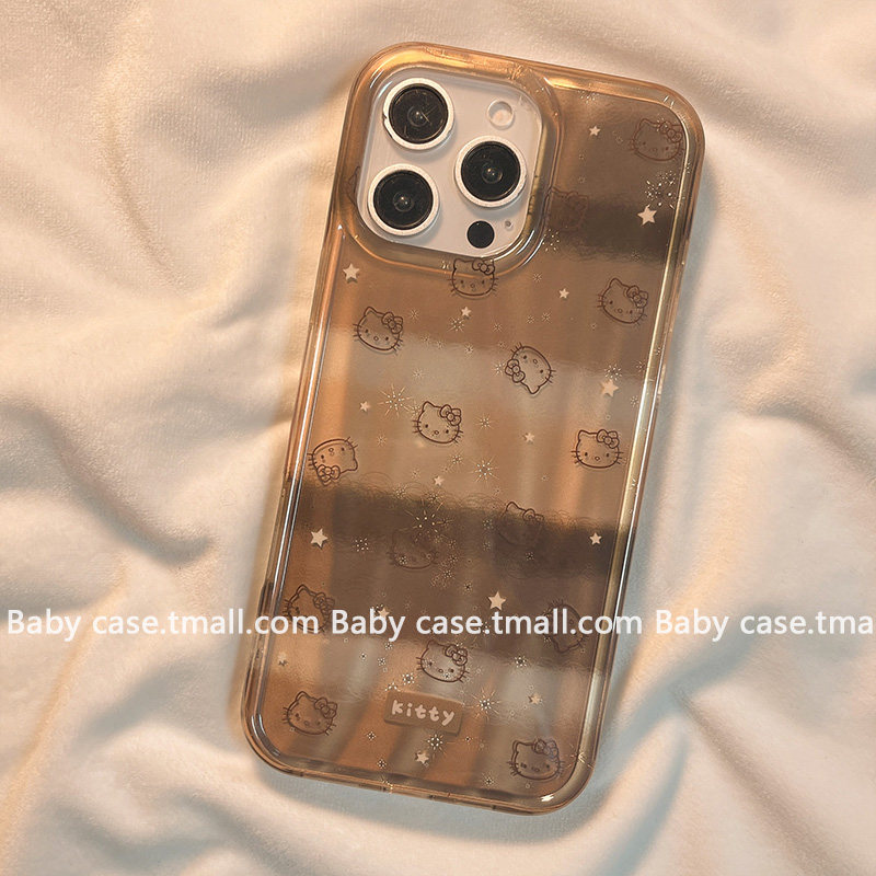 北比高级感棕色条纹星星线条KT猫适用苹果17promax手机壳iphone16pro新款15镭射17复古14pm女13pro小众16全包