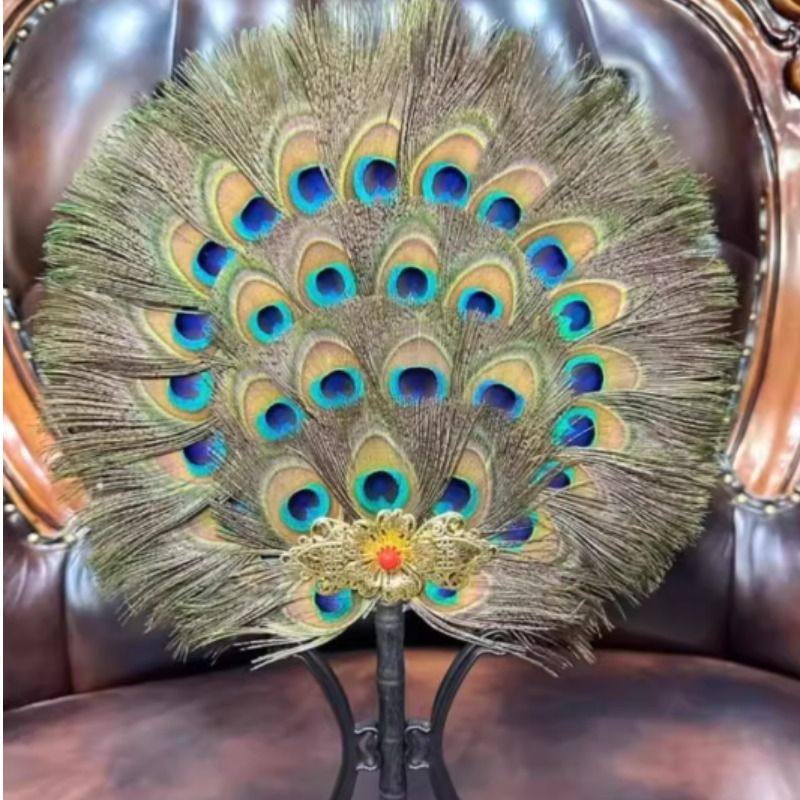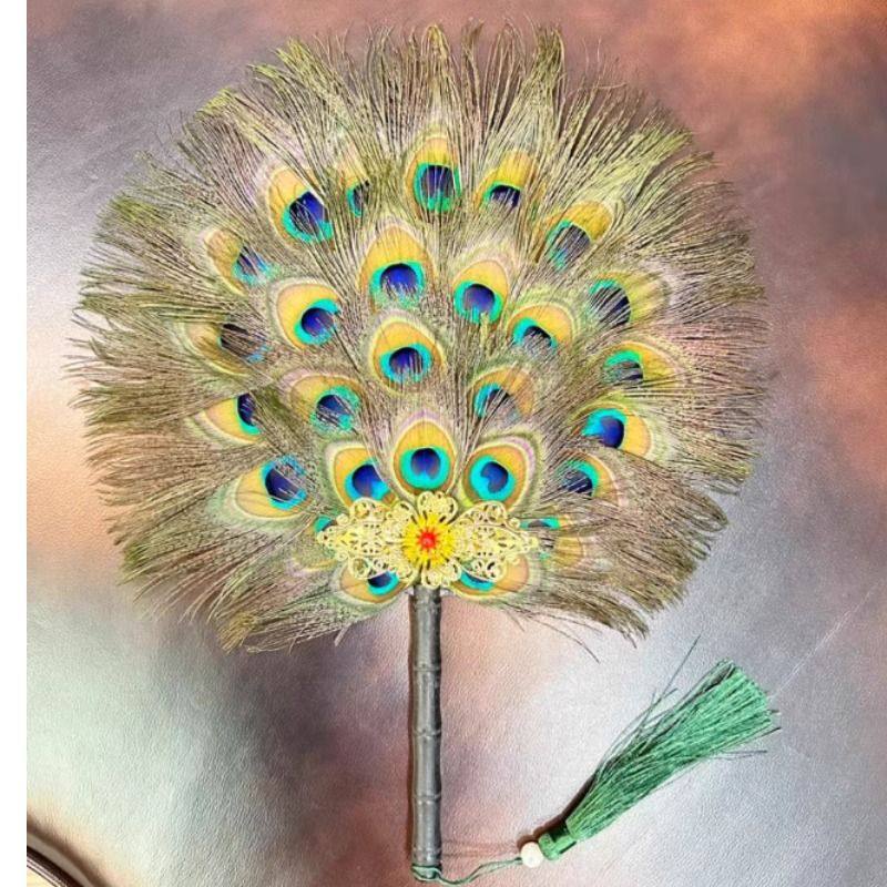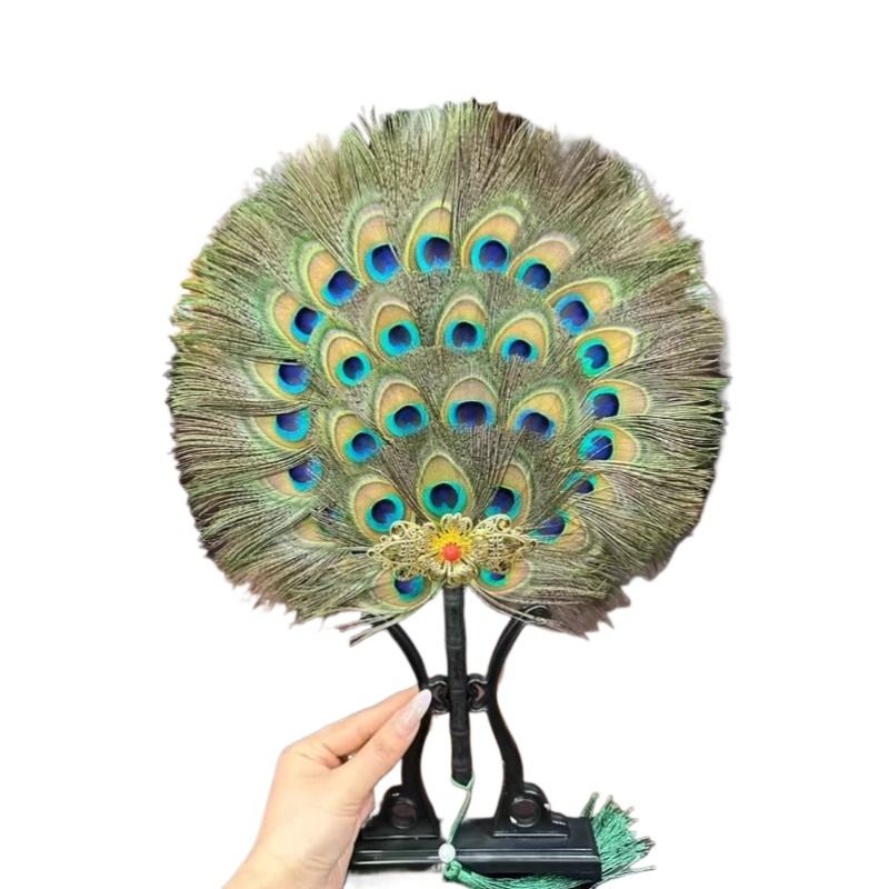 结婚喜扇孔雀羽毛扇古典中国风团扇客厅装饰摆件礼品宫扇新娘团扇