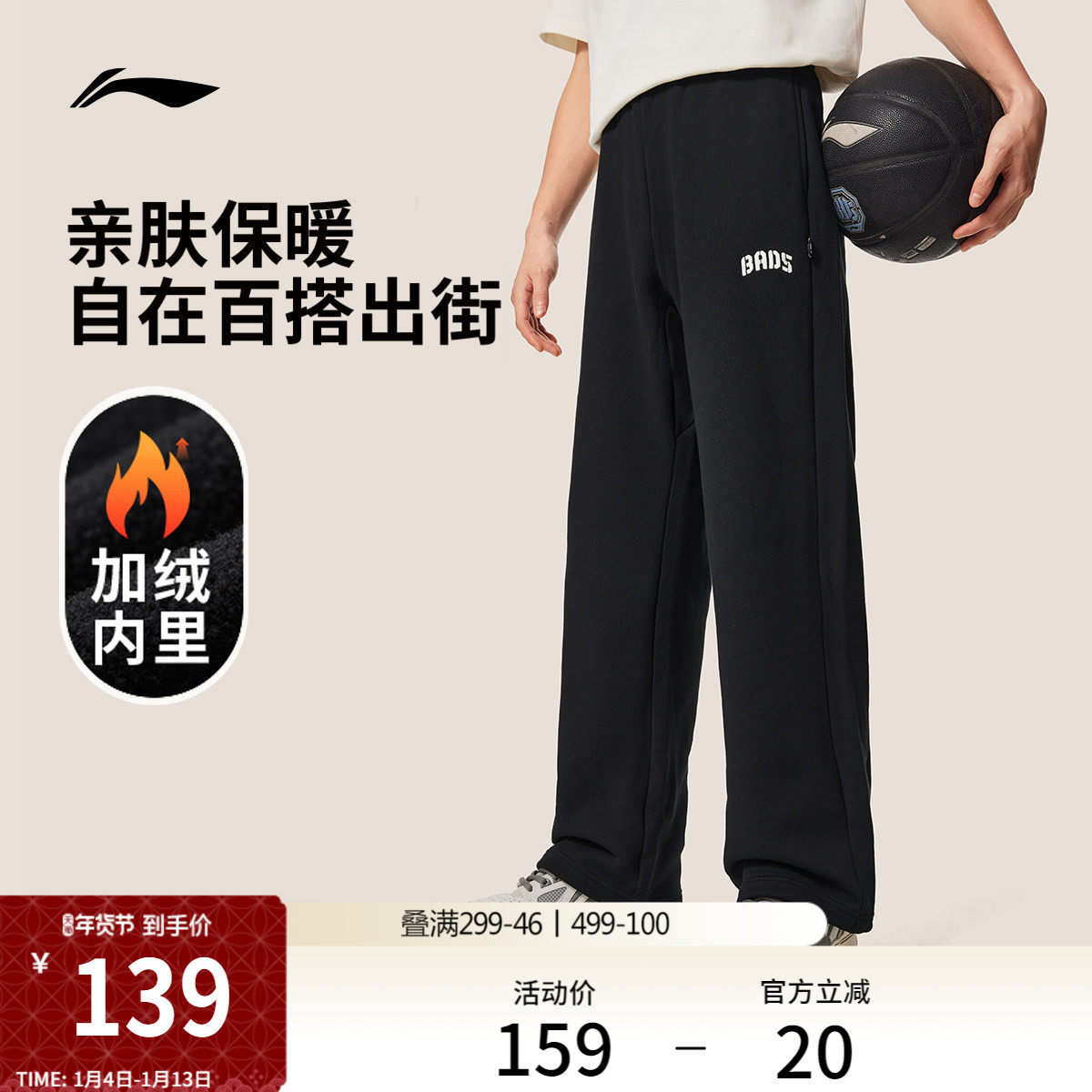李宁卫裤男士新款反伍BADFIVE长裤保暖黑色裤子加绒休闲运动长裤
