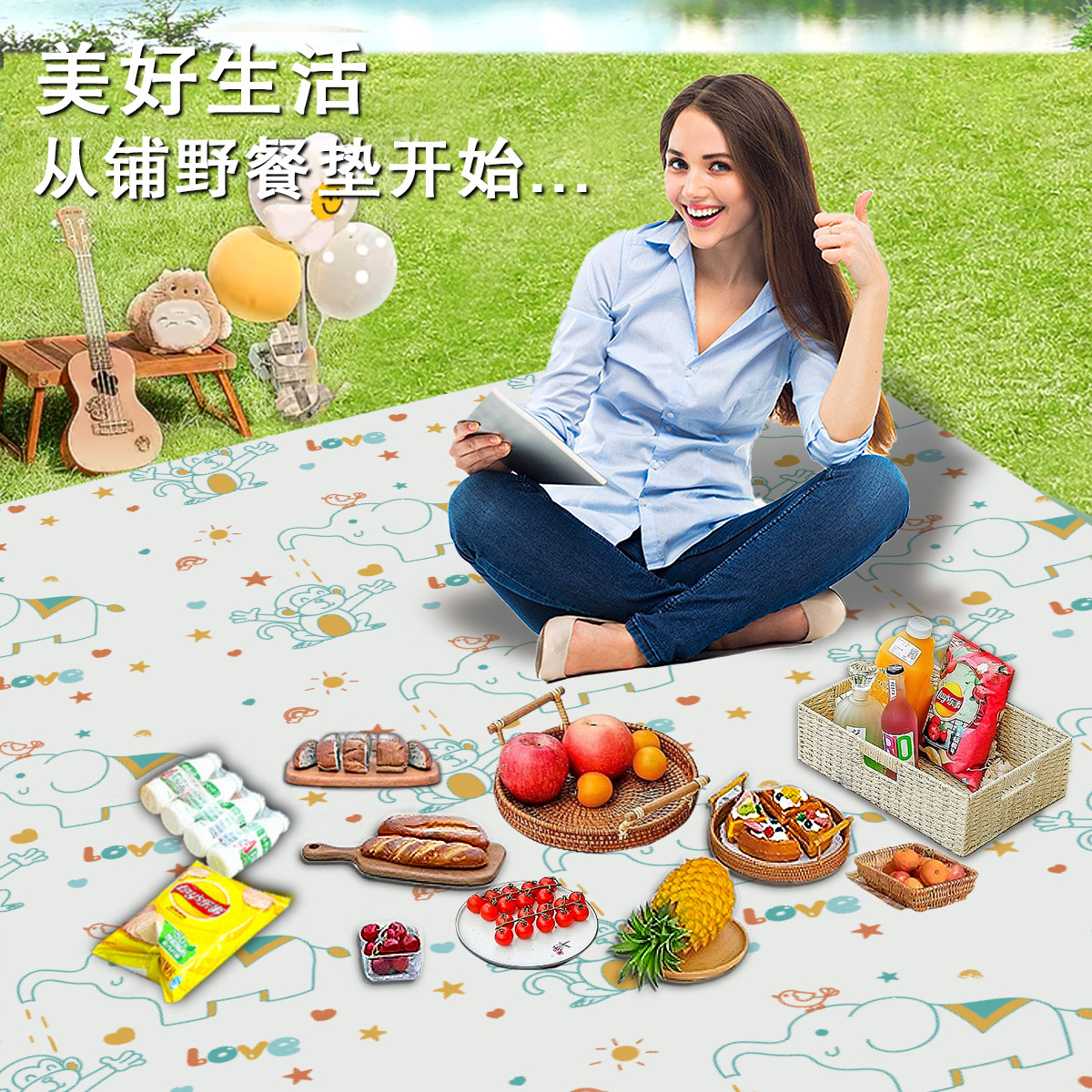 野餐垫防潮垫防水加厚便携式户外旅游露营野餐地垫草坪春游沙滩垫