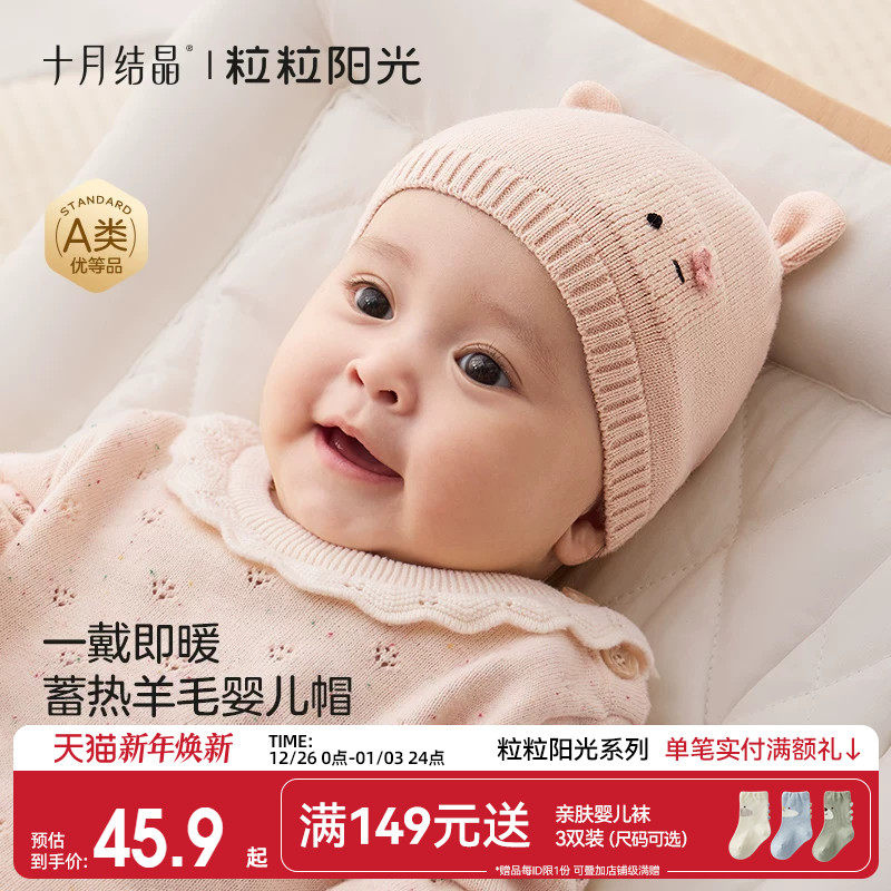 十月结晶粒粒阳光婴儿帽子宝宝秋冬柔软针织帽子羊毛蓄热宝宝帽子