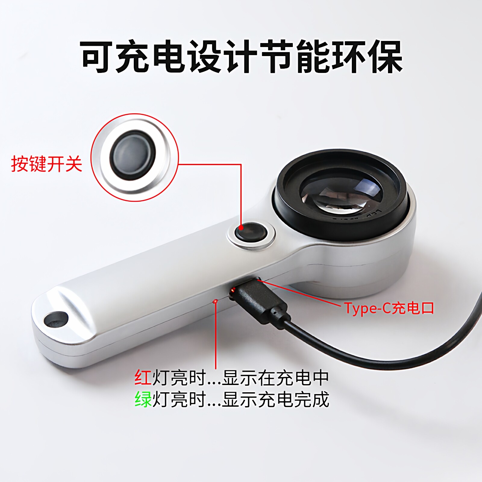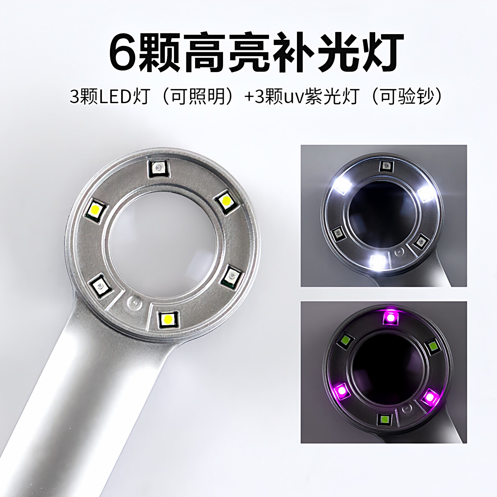 圣创60高清鉴宝放大镜正品高倍白酒烟珠宝茶叶鉴定专用ic芯片手持30古董钱币带灯刻度邮票印刷紫砂壶天珠1000