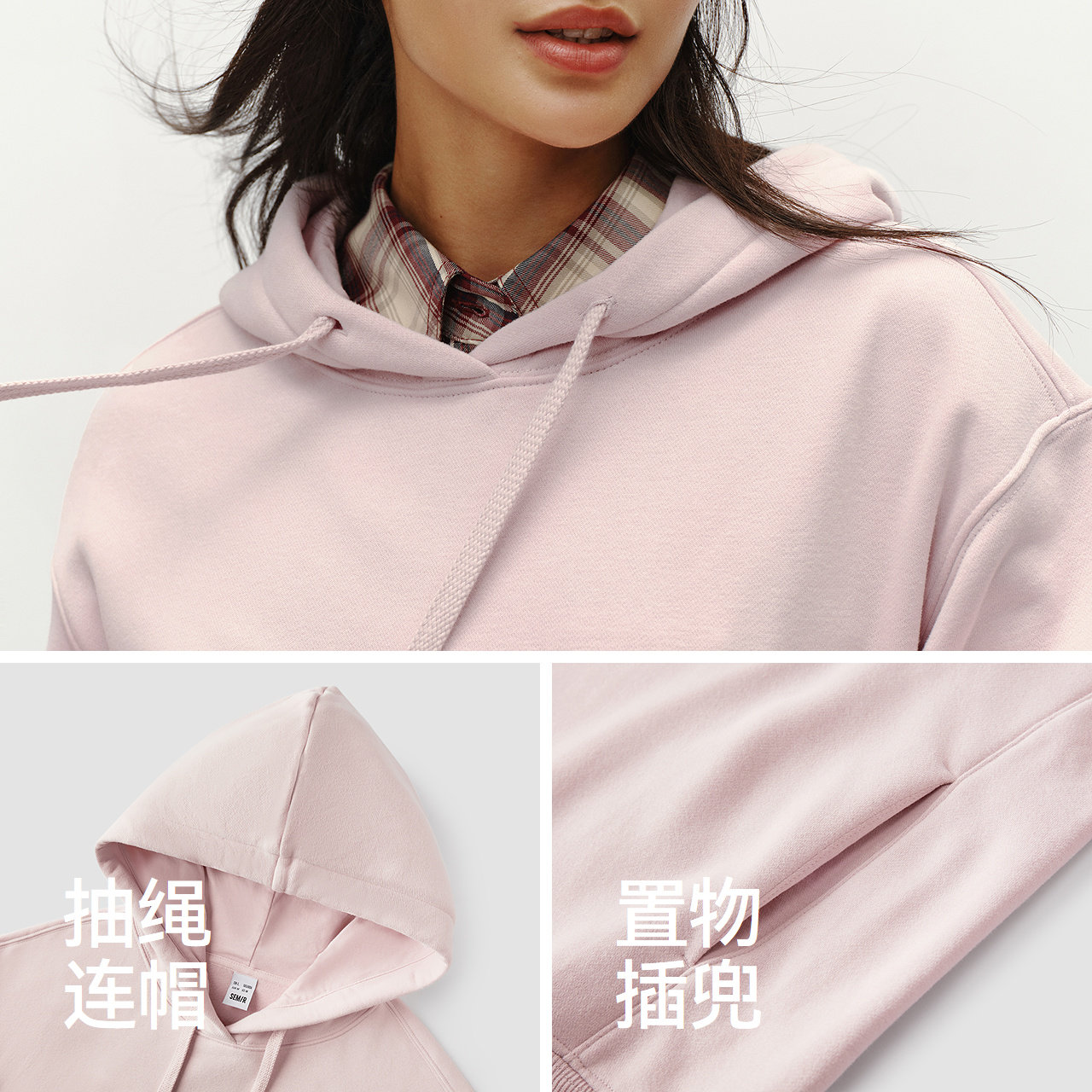 森马卫衣女冬抓绒发热抑菌宽松纯色连帽套头衫拼接显瘦ins潮衣服