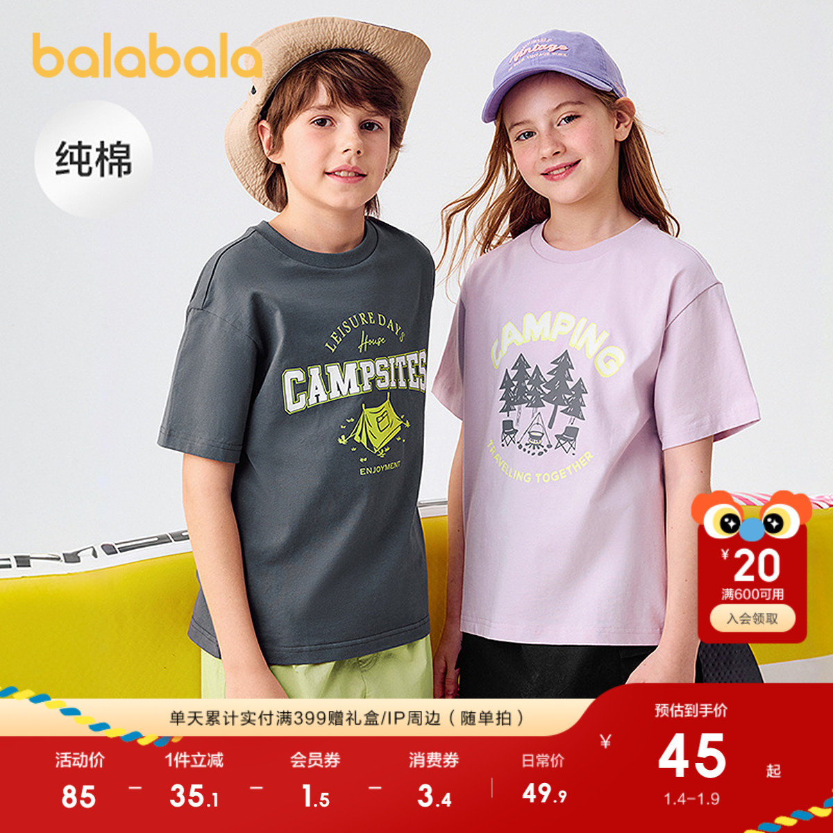 巴拉巴拉童装儿童短袖T恤男童女童2025新款夏装吸湿速干亲子上衣