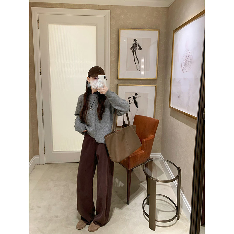 羊皮~棕色山茶花乐福鞋女2025新款通勤粗跟单鞋百搭英伦风小皮鞋
