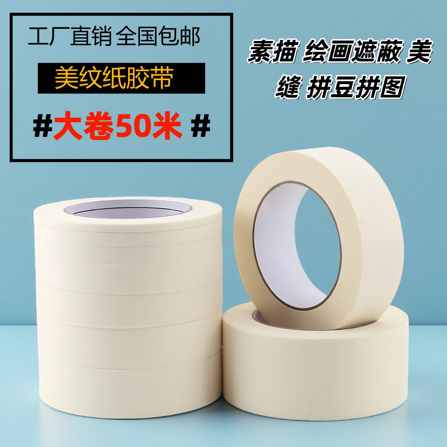 永冠美纹纸胶带可书写纸胶布喷漆遮蔽美纹胶手撕胶带美文纸美缝胶带画画贴边不残留分色胶带纸胶带美术生专用