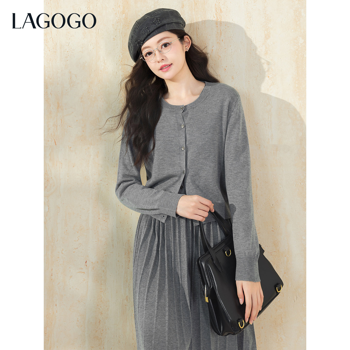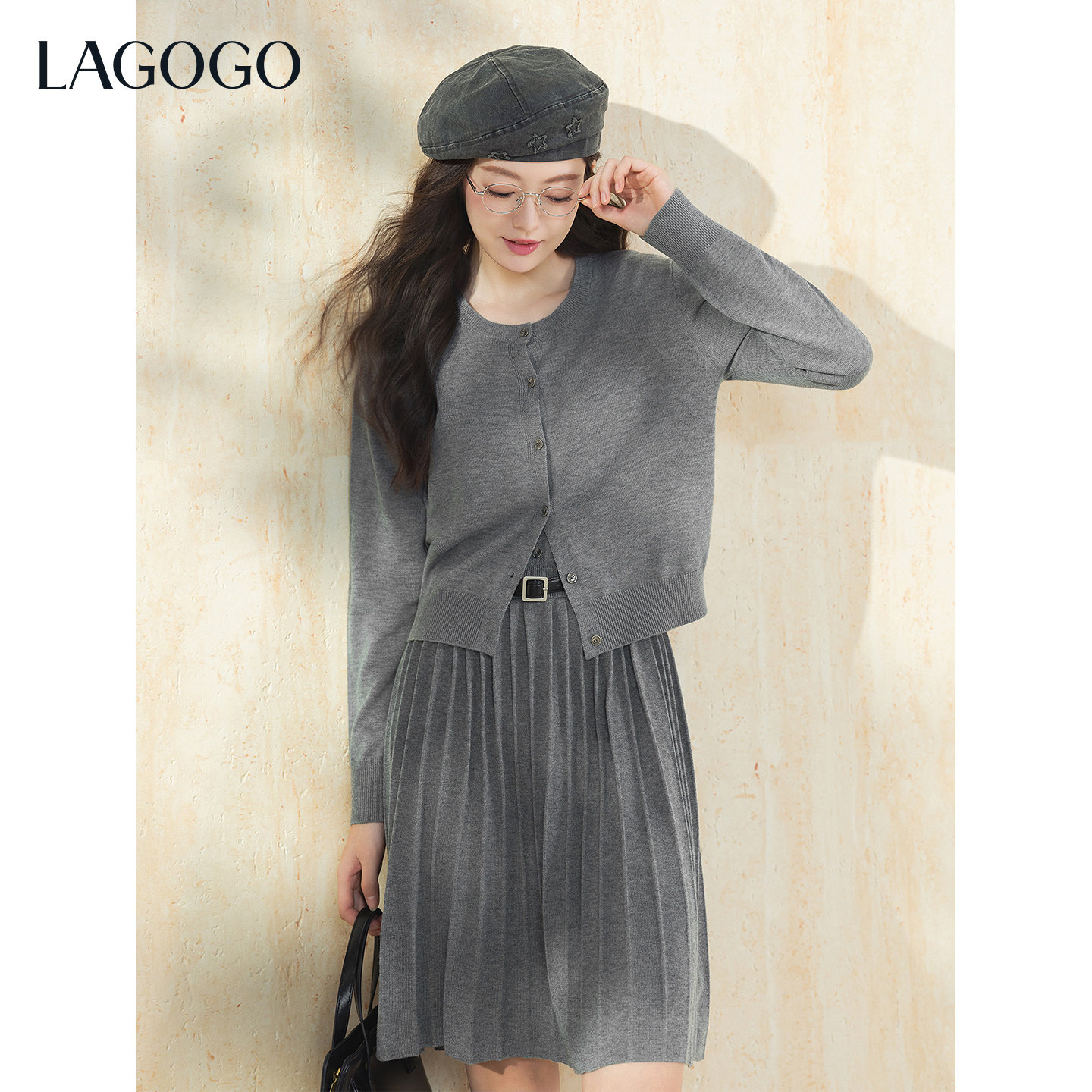 LAGOGO灰逸雅搭针织连衣裙两件套女拉谷谷2026春季新款背心裙套装