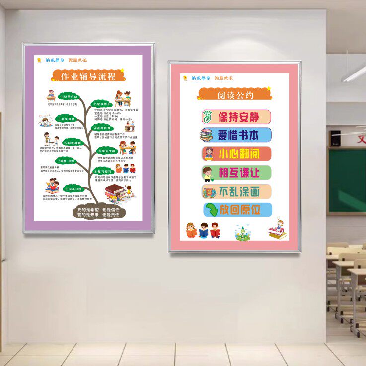 辅导托管班级墙面布置装饰墙画中心培训海报文化墙贴作业流程挂图