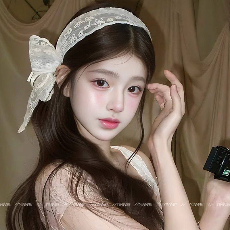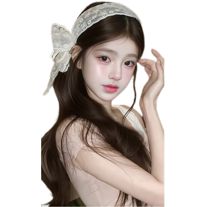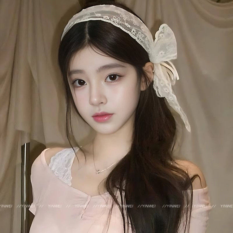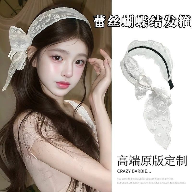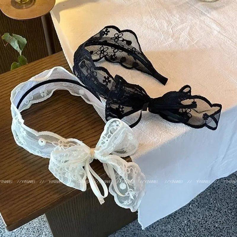 甜美蝴蝶结蕾丝宽边发箍女2025新款发带式压发头箍夏发卡网红头饰