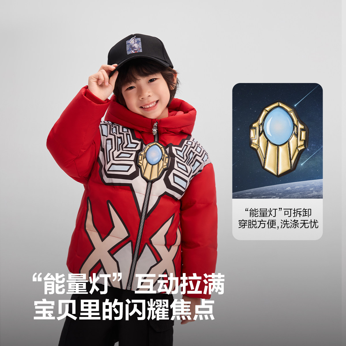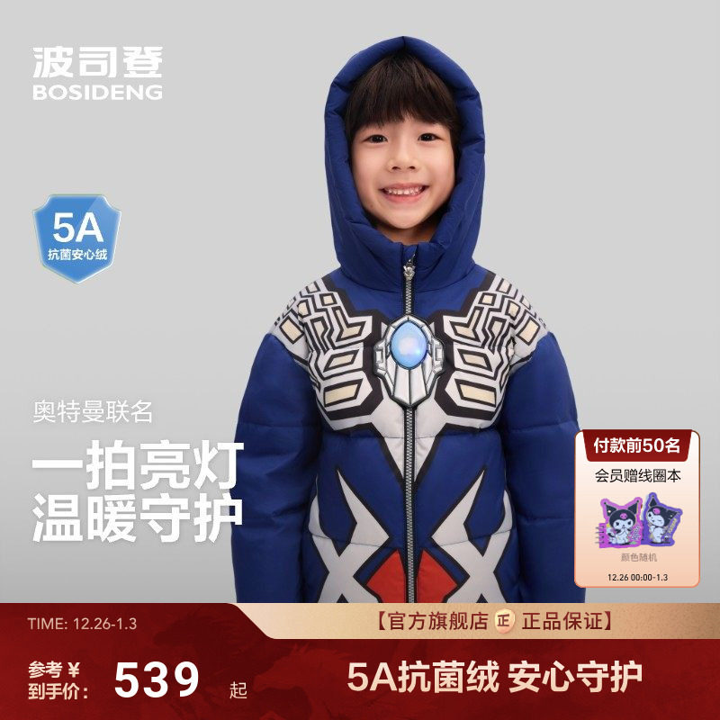 【奥特曼联名】2025新款波司登儿童羽绒服男童女童连帽童趣拍拍灯