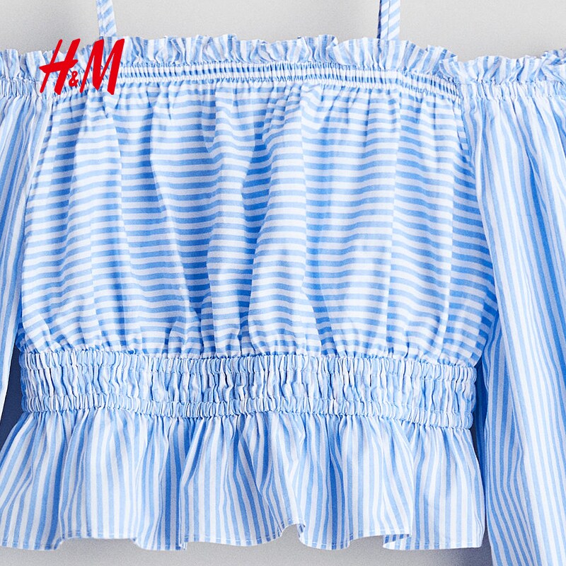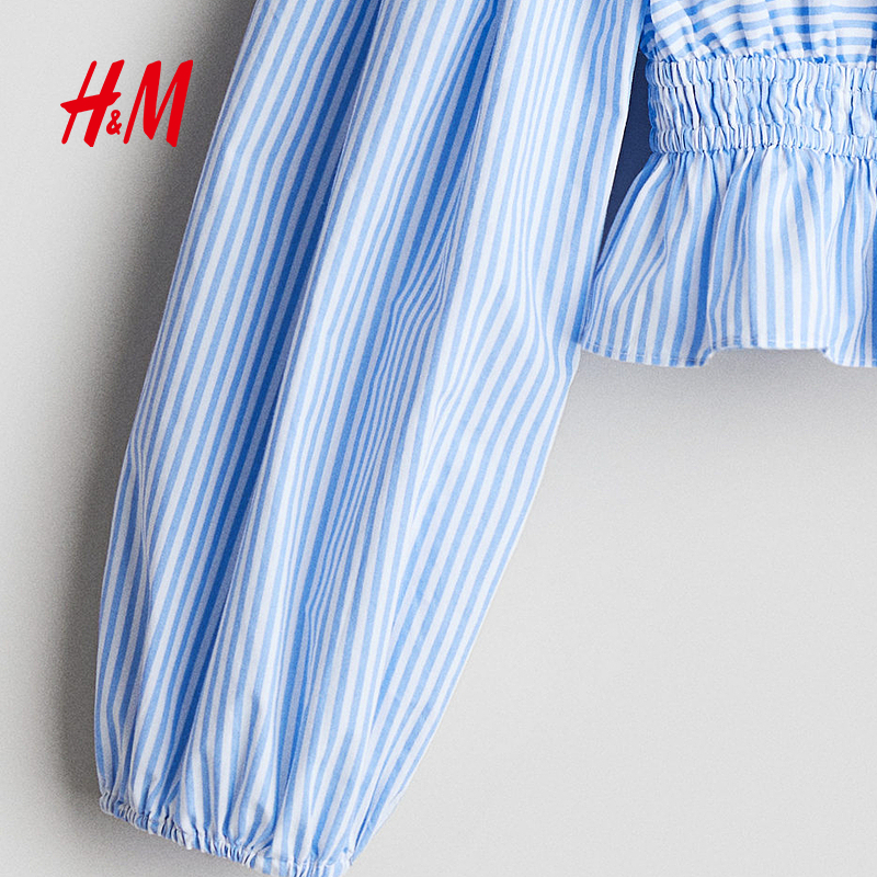 HM童装儿童女童衬衫春季长袖简约精致缩褶露肩上衣1289613