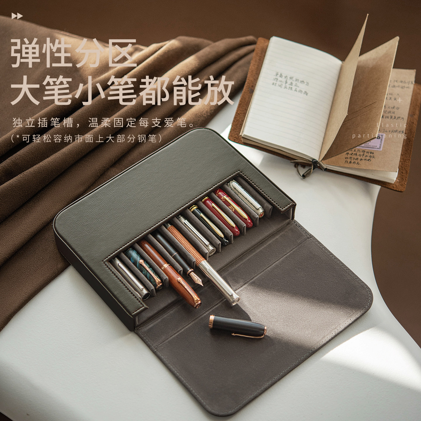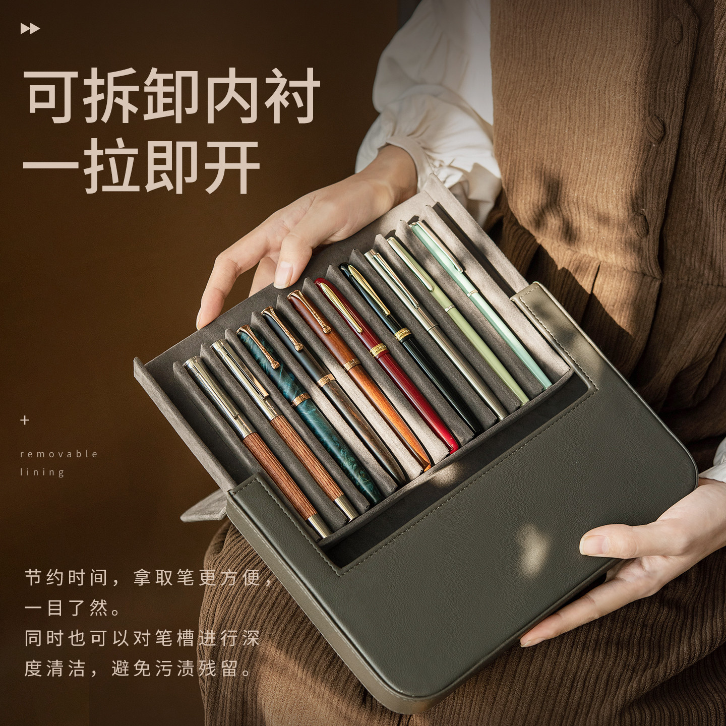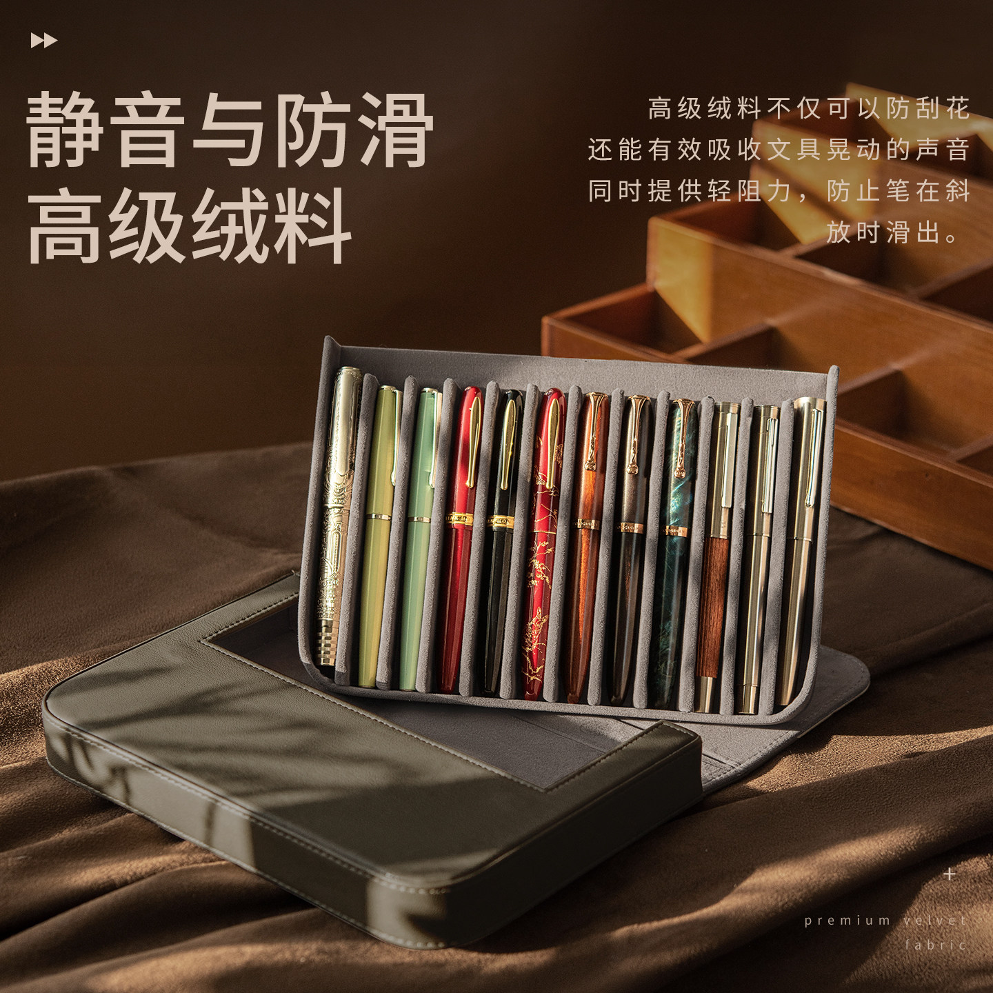 弘典钢笔收纳盒12支装大容量钢笔盒便携笔插收纳袋防刮防干笔包简约多层分隔保护套磁吸抽屉式收纳包独立笔仓