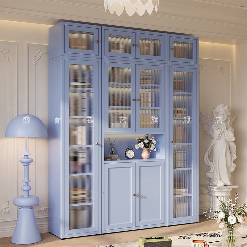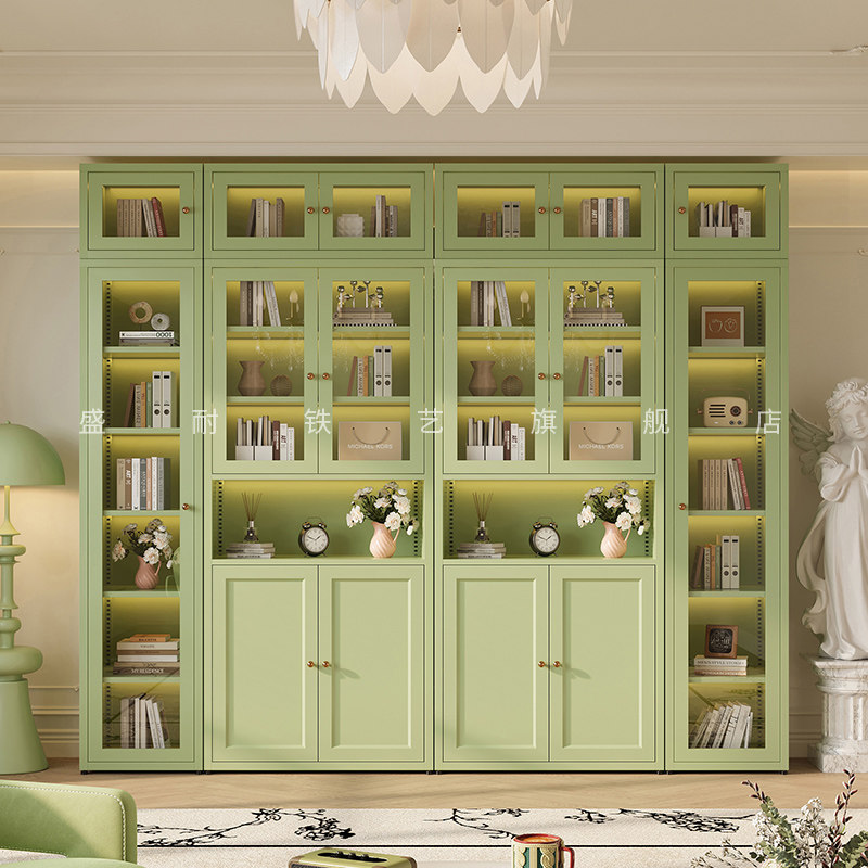 钢制书柜儿童书架落地家用客厅亚克力透明防尘门展示柜储物置物架