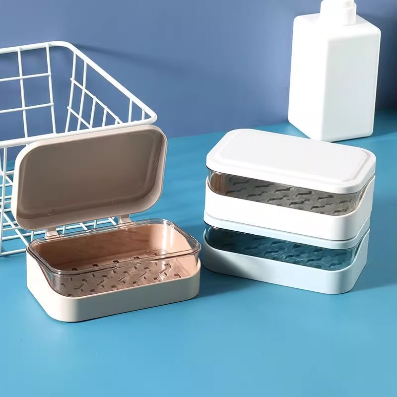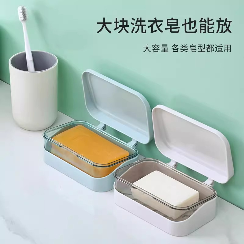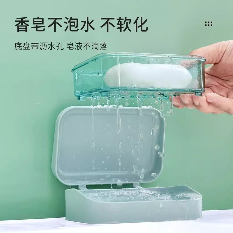 卫生间肥皂盒带盖香皂盒浴室免打孔翻盖家用沥水洗衣皂盒皂架双层