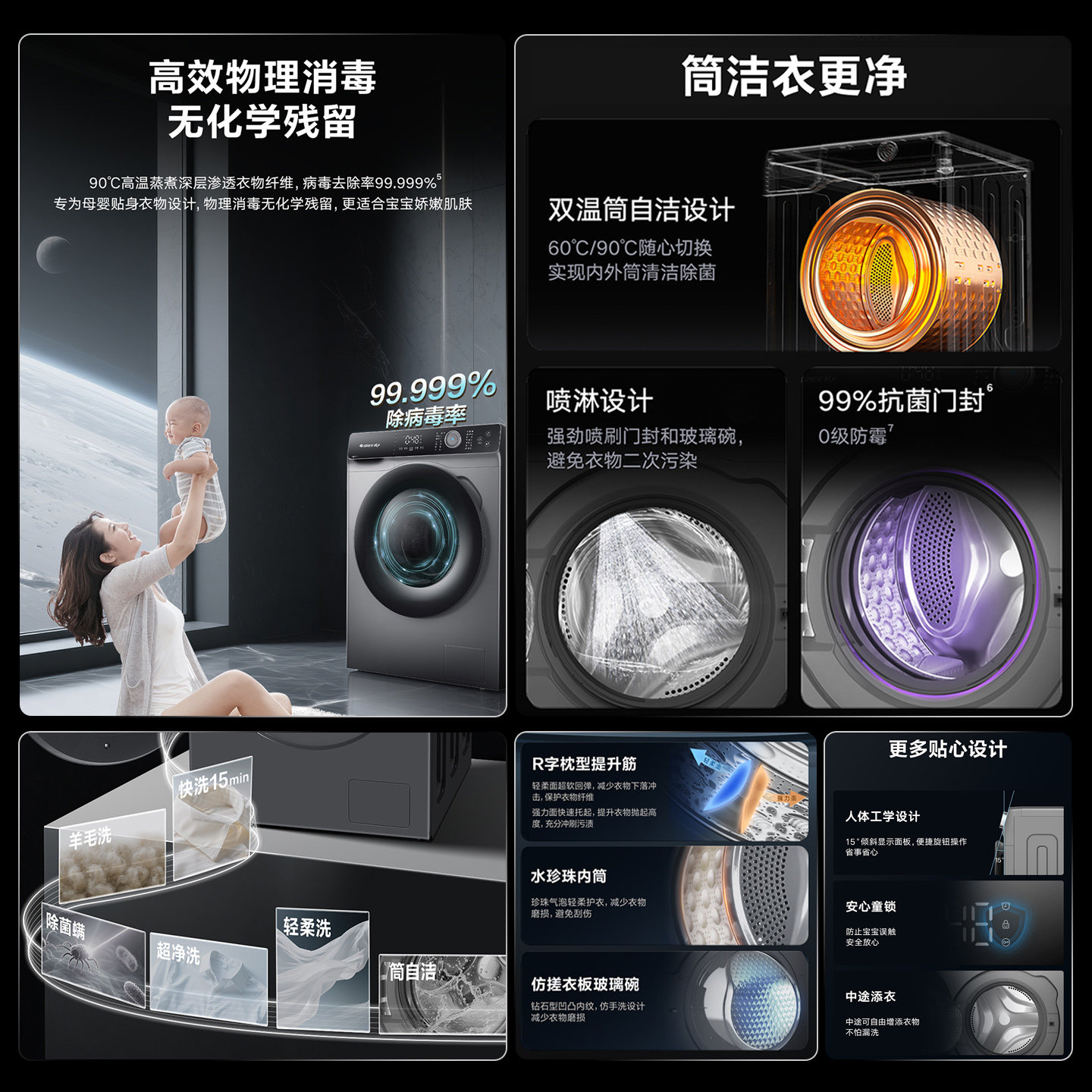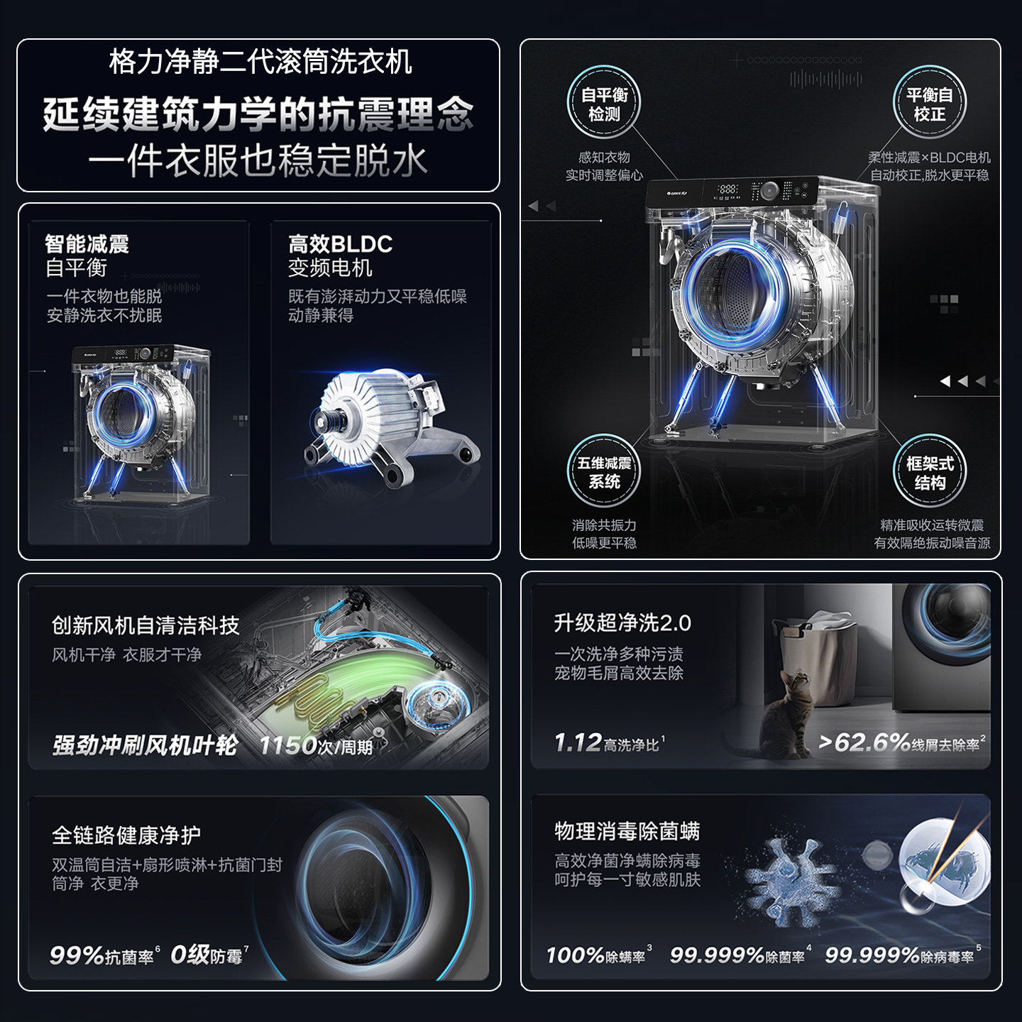 格力滚筒洗衣机家用10KG大容量超静音除菌除螨高温洗除毛自洁净静