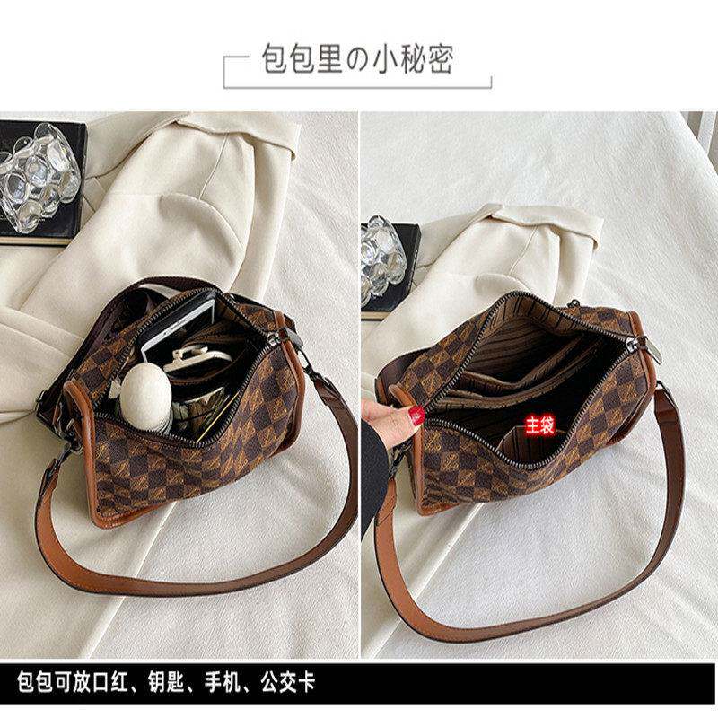 爱马女仕新款英伦风大容量通勤包卡其色格子小方休闲女士斜挎包