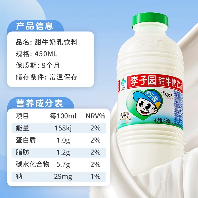 正品成毅李子园甜牛奶225ml和450ml儿童早餐奶整箱饮品草莓瓶装