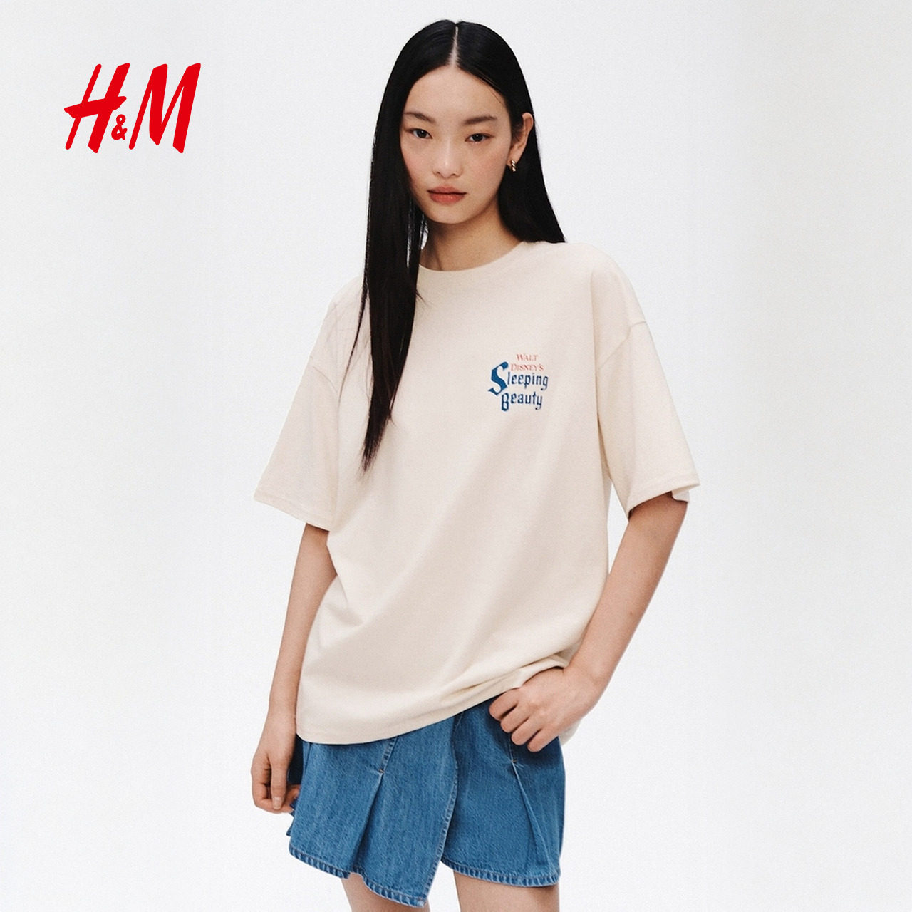 HM女装T恤2026春季新款图案印花睡美人设计大廓形舒适短袖1324128