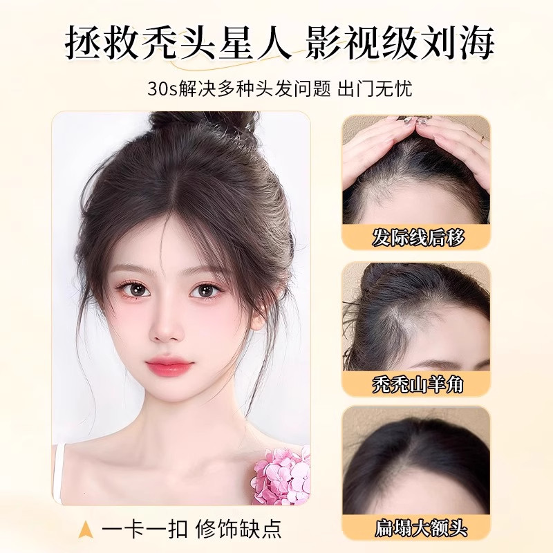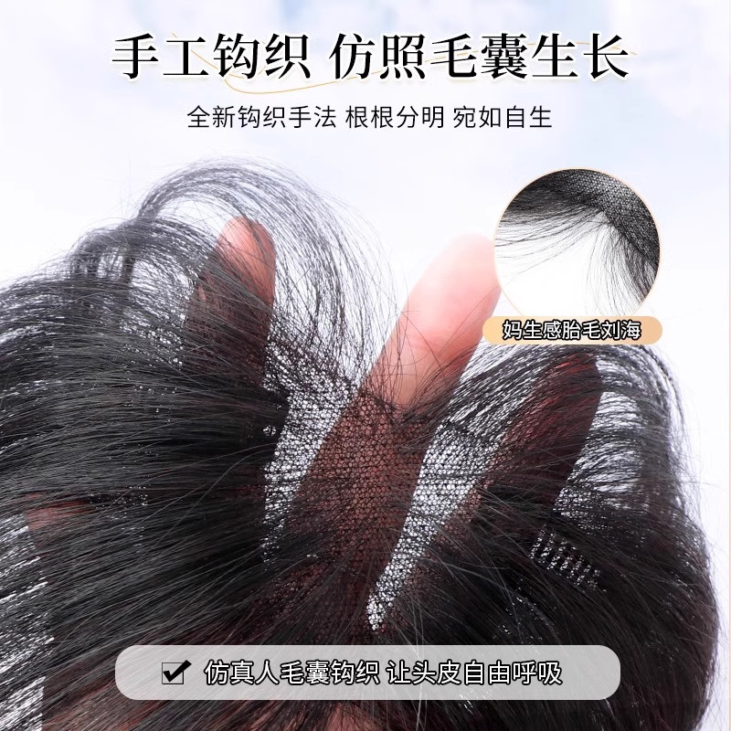 胎毛八字刘海假发女片头顶真发自然前额鬓角补发无痕发际线假发贴