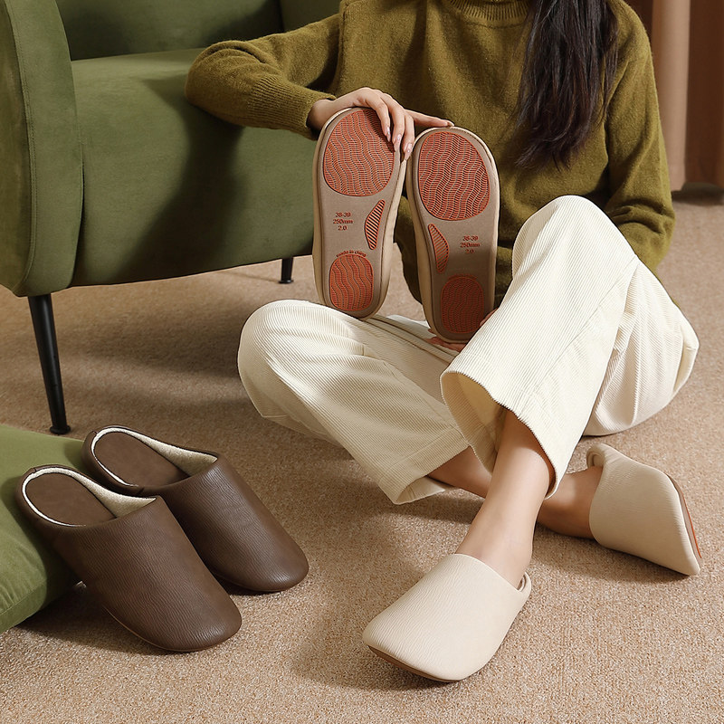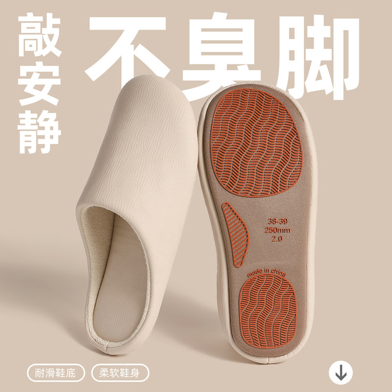 pu皮防水棉拖鞋女2025新款秋冬软底室内家居地板静音防滑毛拖鞋男