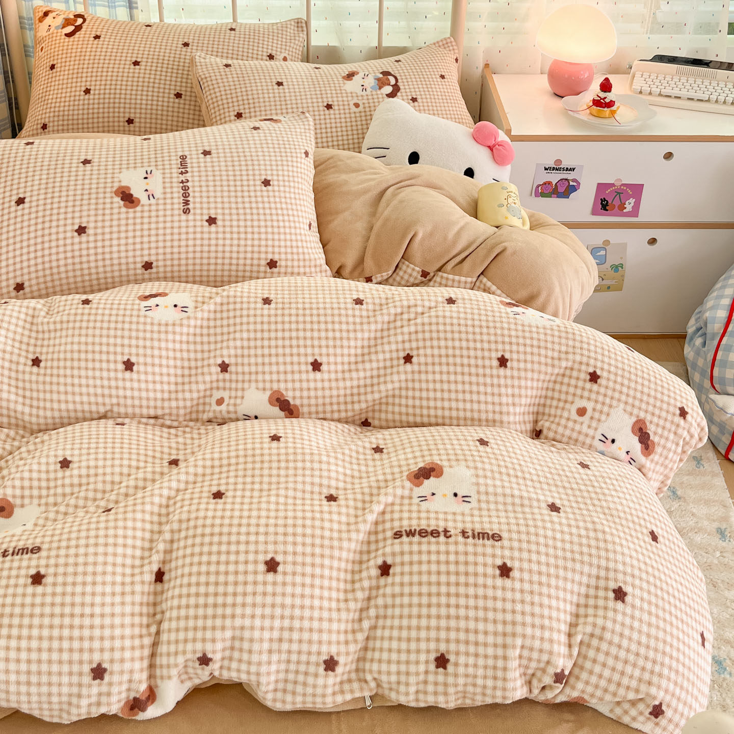 秋冬季加厚四件套牛奶绒被套床单双面加绒被罩床笠学生宿舍三件套